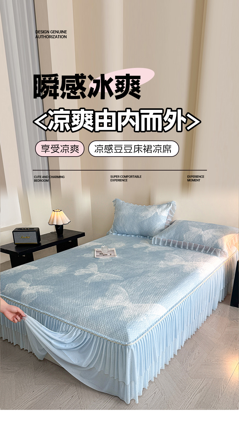 (总)诺梵家纺 2026新款冰豆豆PE高分子凉感双层床裙款凉席,蝶影-灰,蝶影-粉,蝶影-蓝,蝶影-绿