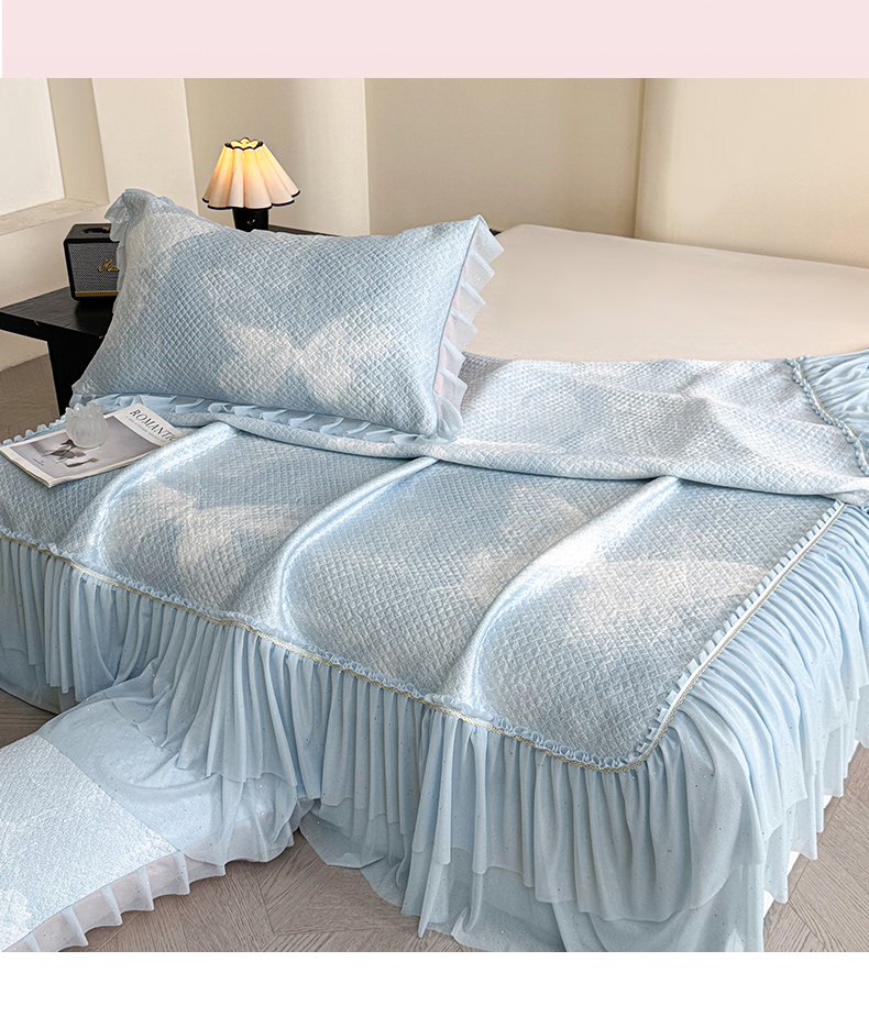 诺梵家纺 2026新款PE冰豆豆冰丝凉席床裙款-玫瑰系列 蓝玫瑰,蓝玫瑰