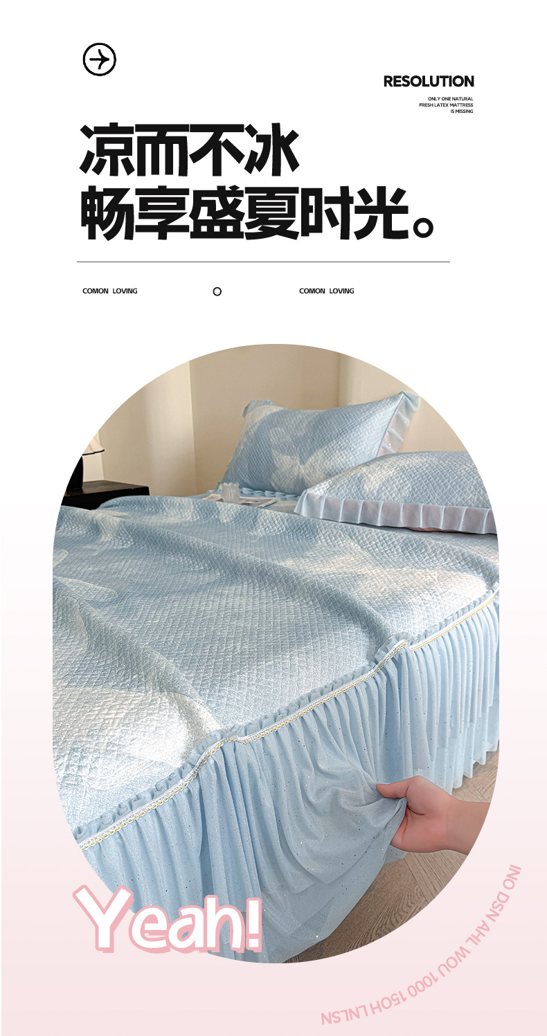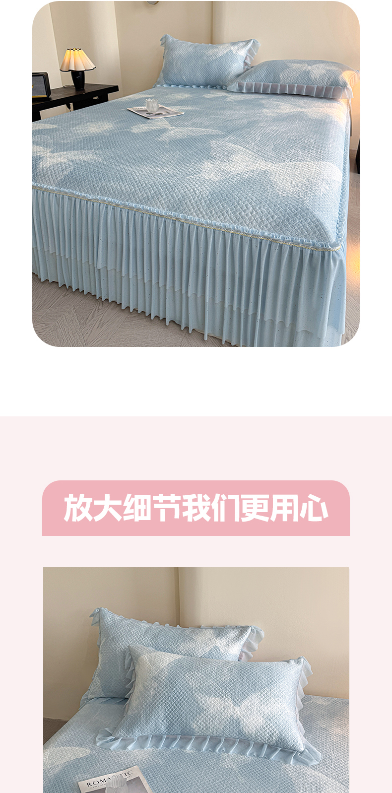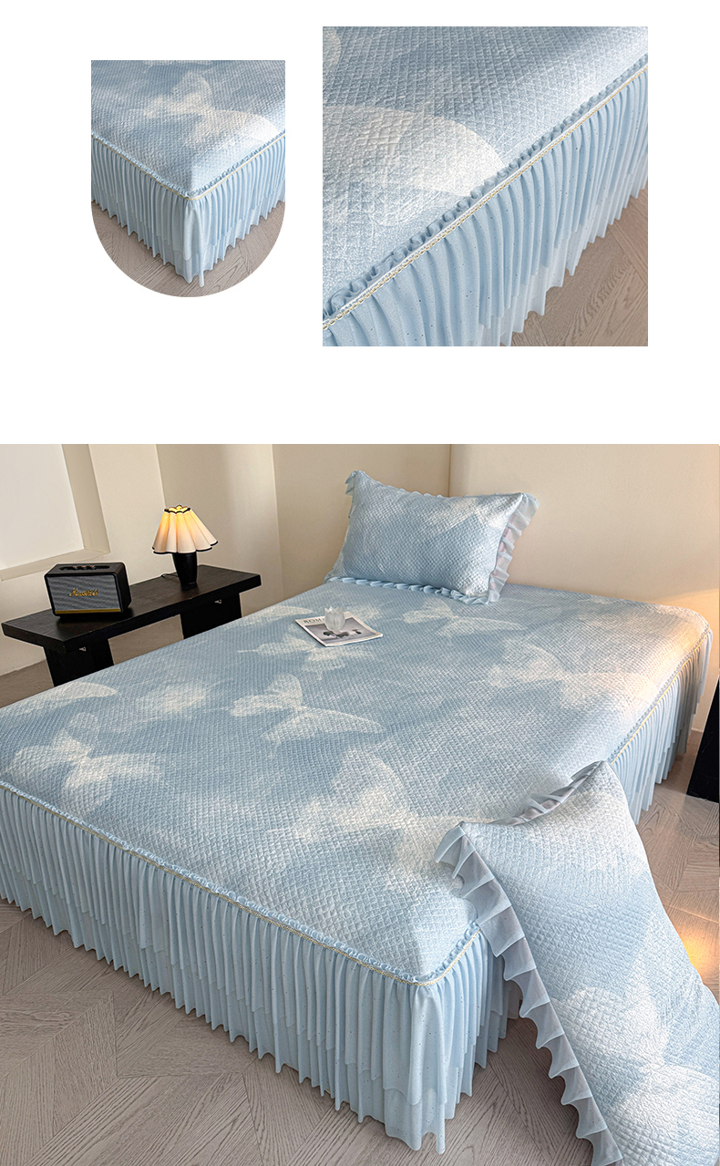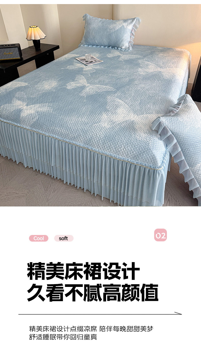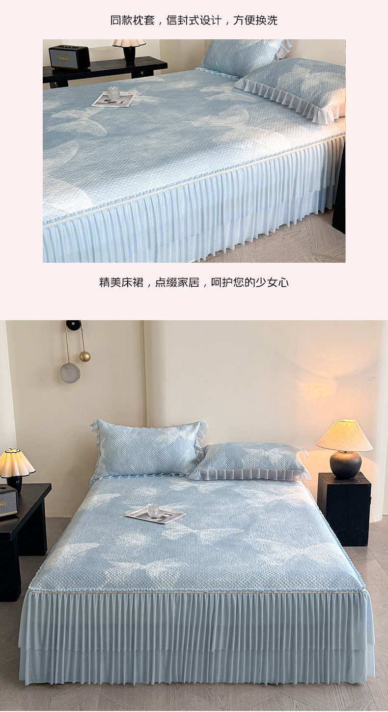 商品名称:诺梵家纺 2026新款冰豆豆PE高分子凉感双层床裙款凉席 蝶影-蓝