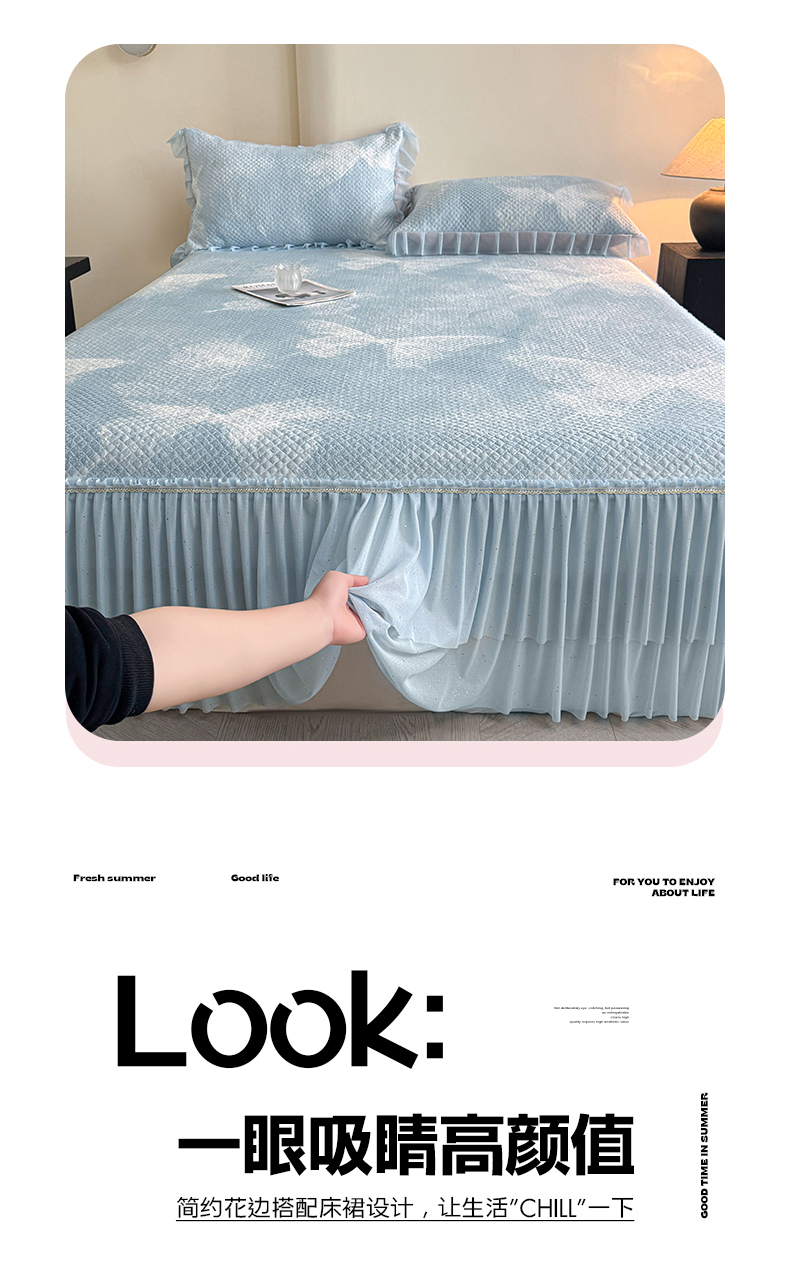 (总)诺梵家纺 2026新款冰豆豆PE高分子凉感印花床裙款凉席三件套【控价1.5米139 ;1.8米149;2.0米159】,简时光粉,小蛮腰粉,小蛮腰-蓝,小蛮腰灰,小蛮腰黄,简时光灰
