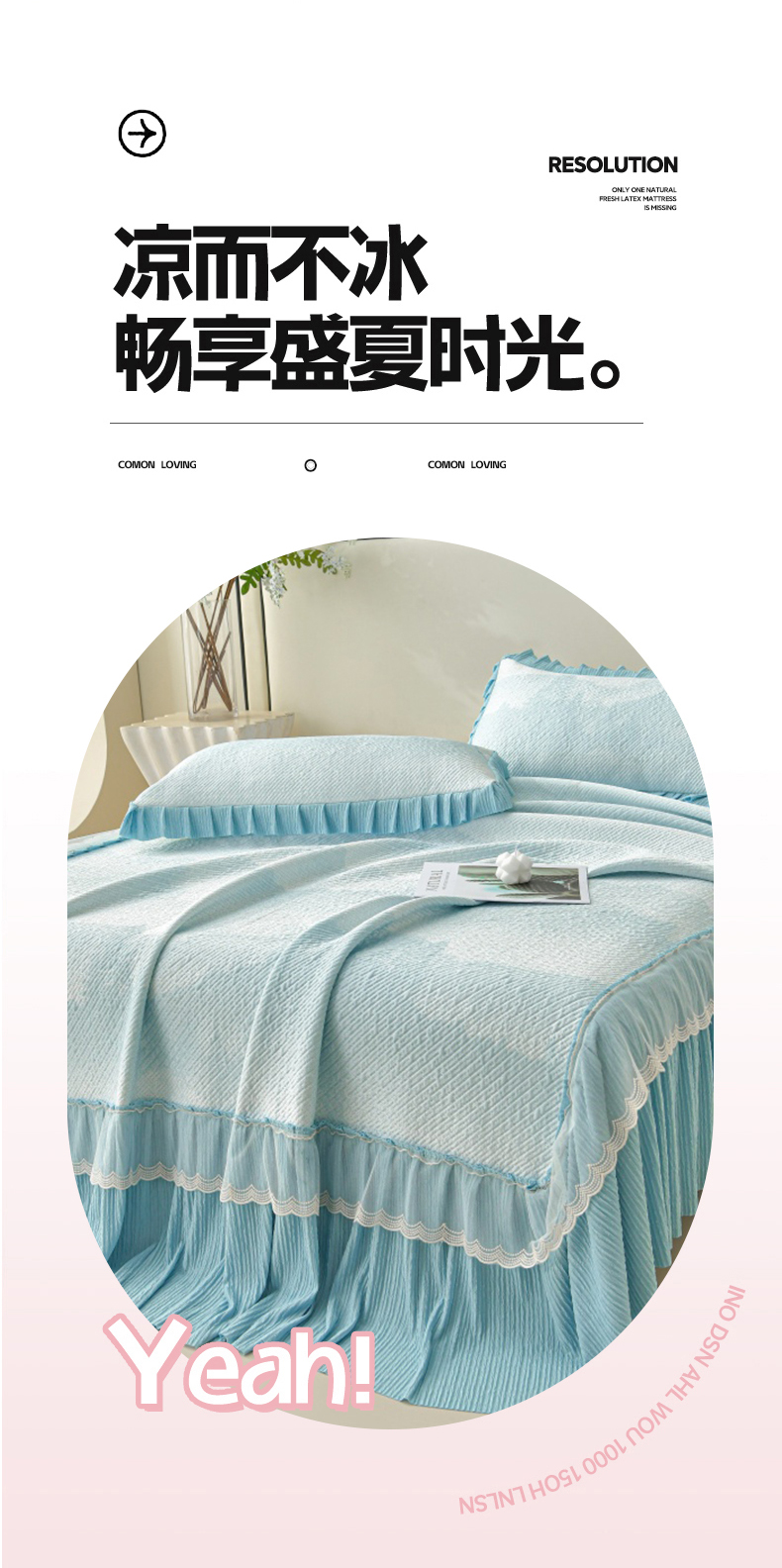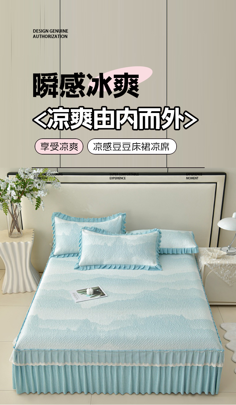 (总)诺梵家纺 2026新款冰豆豆PE高分子凉感印花床裙款凉席三件套【控价1.5米139 ;1.8米149;2.0米159】,简时光粉,小蛮腰粉,小蛮腰-蓝,小蛮腰灰,小蛮腰黄,简时光灰