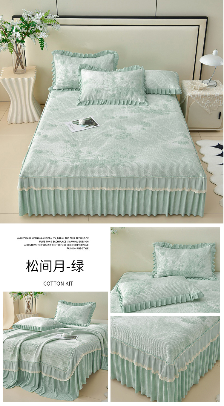 (总)诺梵家纺 2026新款凉豆豆PE高分子凉感花边床裙凉席三件套,松间月-蓝,见山-粉,见山-灰,见山-蓝,见山-绿,时光玫瑰-粉,时光玫瑰-灰,松间月-粉,松间月-灰,松间月-绿