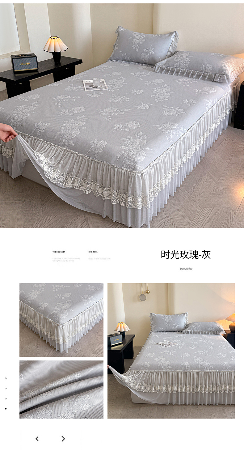 诺梵家纺 2026新款PE冰豆豆冰丝凉席床裙款-玫瑰系列 灰玫瑰,灰玫瑰