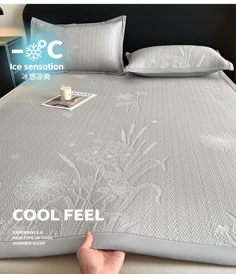 鑫琪莱家纺 2026新款提花浮雕凉豆豆凉感凉席床笠款 蒲公英灰