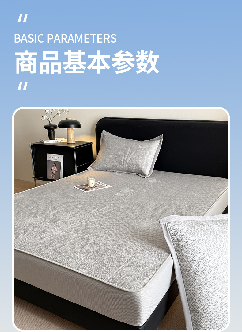 商品名称:鑫琪莱家纺 2026新款提花浮雕凉豆豆凉感凉席床笠款 蒲公英灰