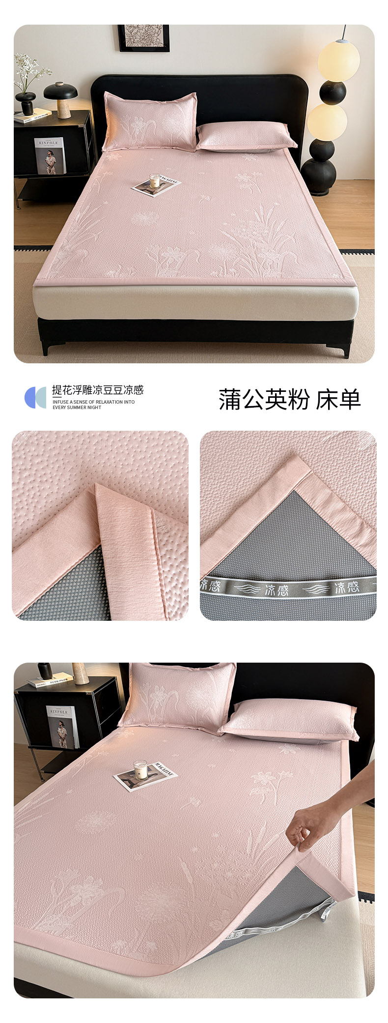 (总)鑫琪莱家纺 2026新款提花浮雕凉豆豆凉感凉席床笠款,蒲公英粉,蒲公英灰,蒲公英蓝,蒲公英绿