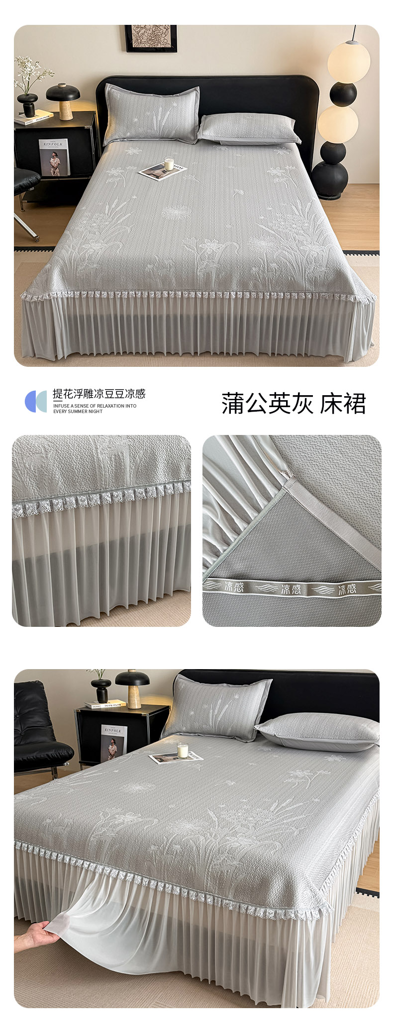 (总)鑫琪莱家纺 2026新款提花浮雕凉豆豆凉感凉席床裙款,蒲公英粉,蒲公英蓝,蒲公英蓝灰,蒲公英绿