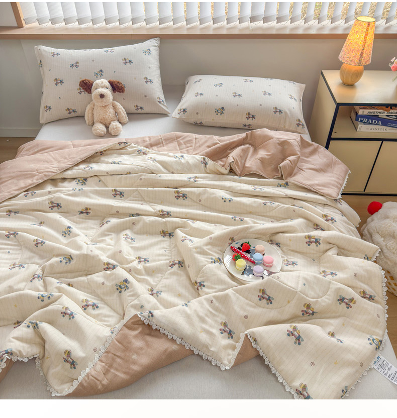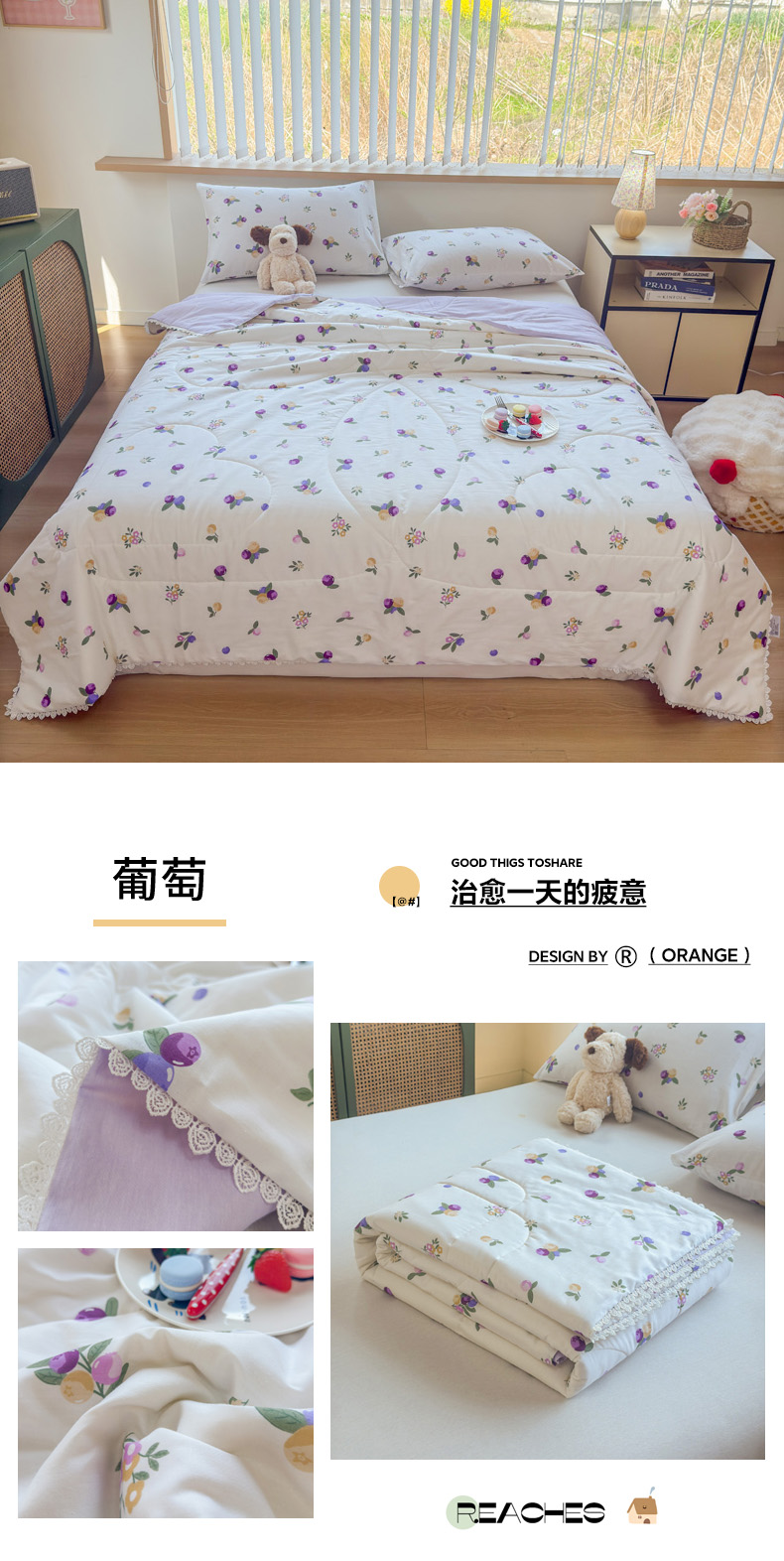 (总)晨晨家纺 2026新款双面全棉花边款新疆棉花夏被,饼干熊,花韵,凯蒂公主,马上有钱,泡泡熊,葡萄,汀兰点素,幸运叶