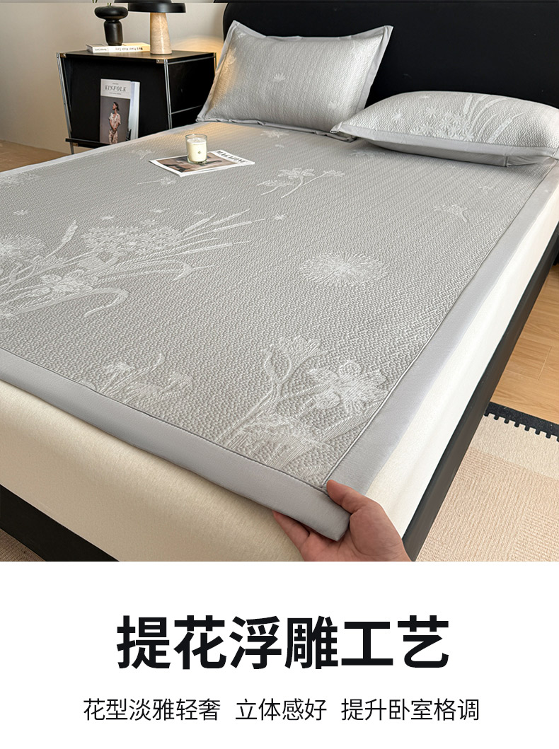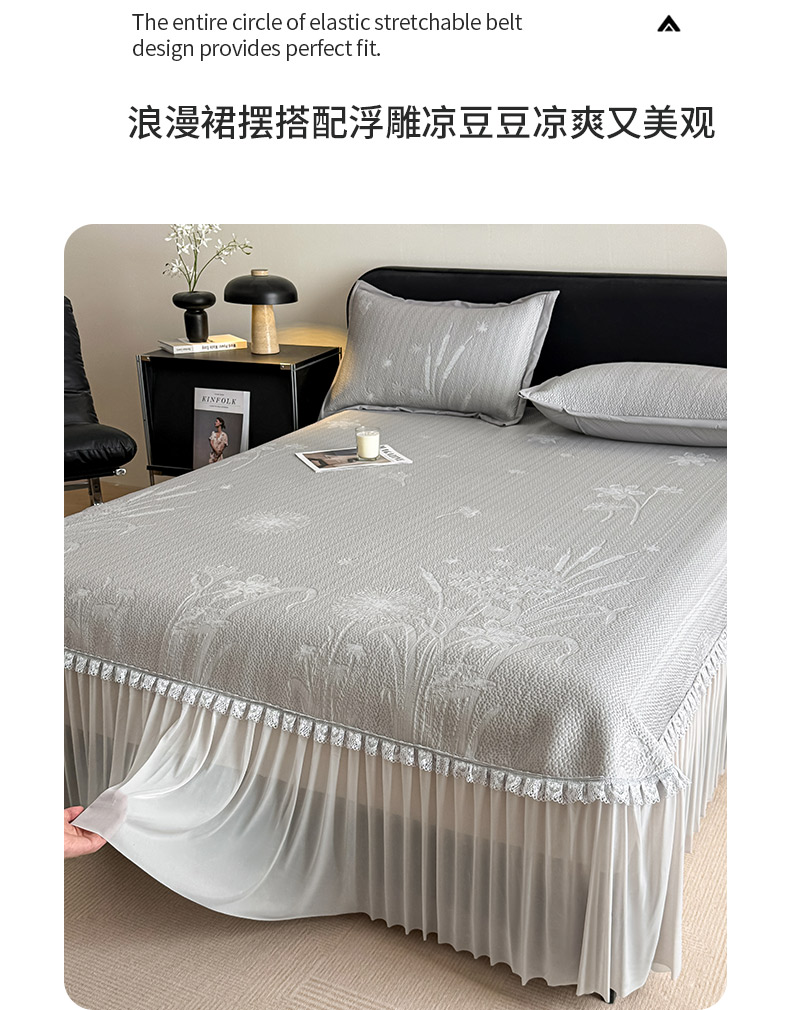 鑫琪莱家纺 2026新款提花浮雕凉豆豆凉感凉席床裙款 蒲公英蓝灰