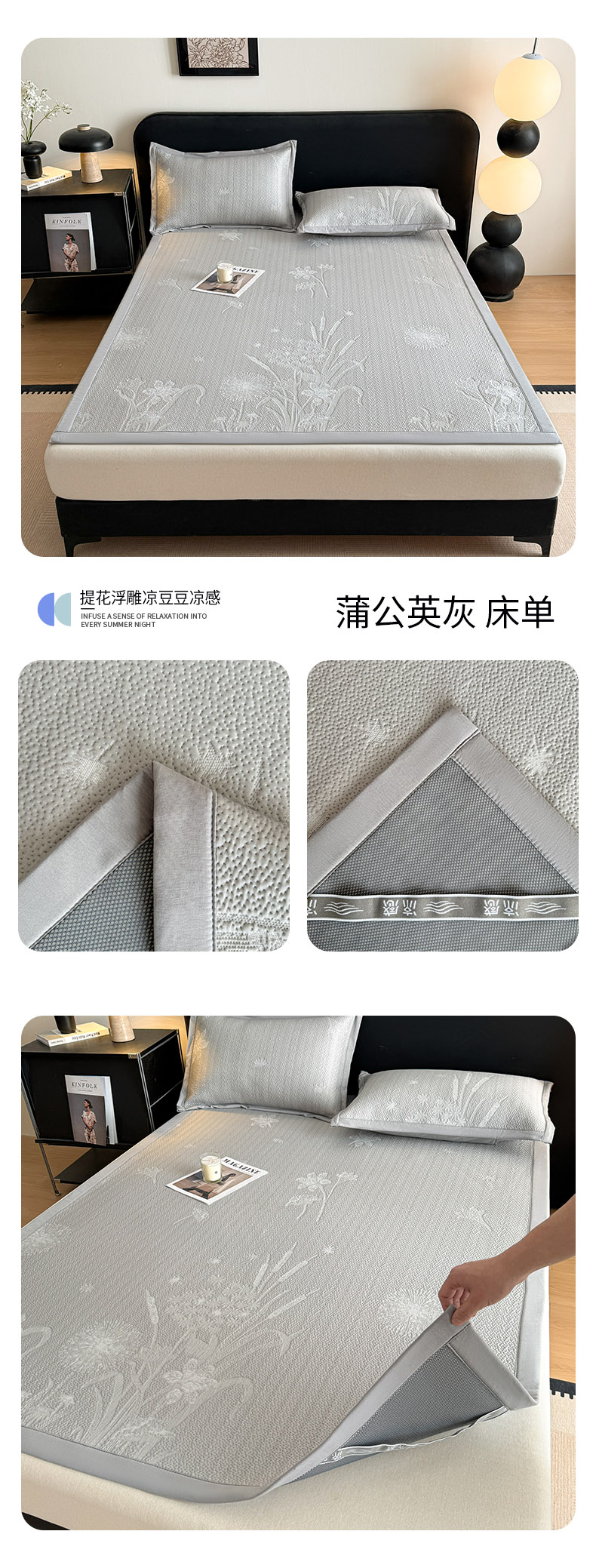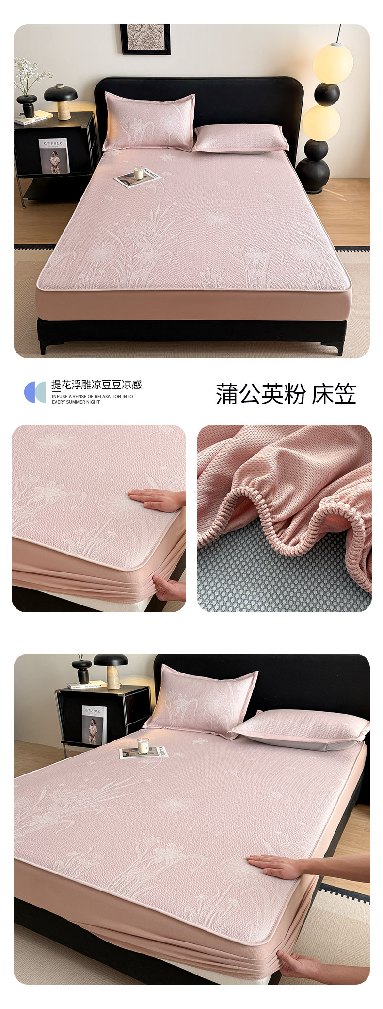(总)鑫琪莱家纺 2026新款提花浮雕凉豆豆凉感凉席床笠款,蒲公英粉,蒲公英灰,蒲公英蓝,蒲公英绿