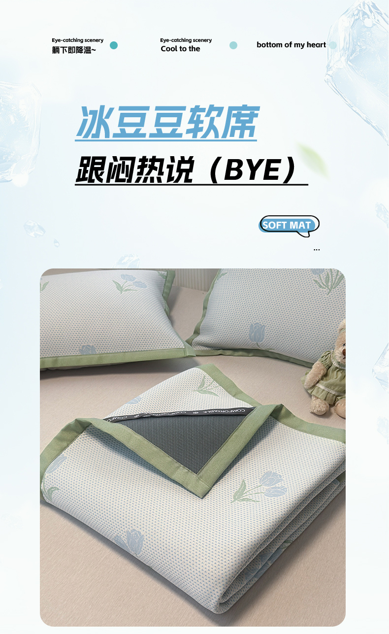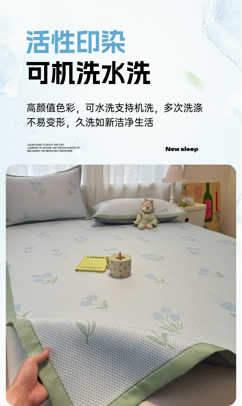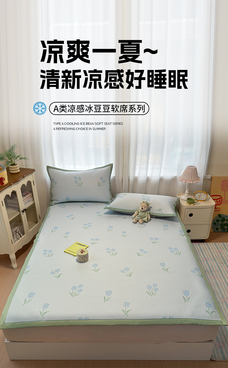 亿梵家居 2026春夏新款冰豆豆PE高分子凉席 花间梦-蓝