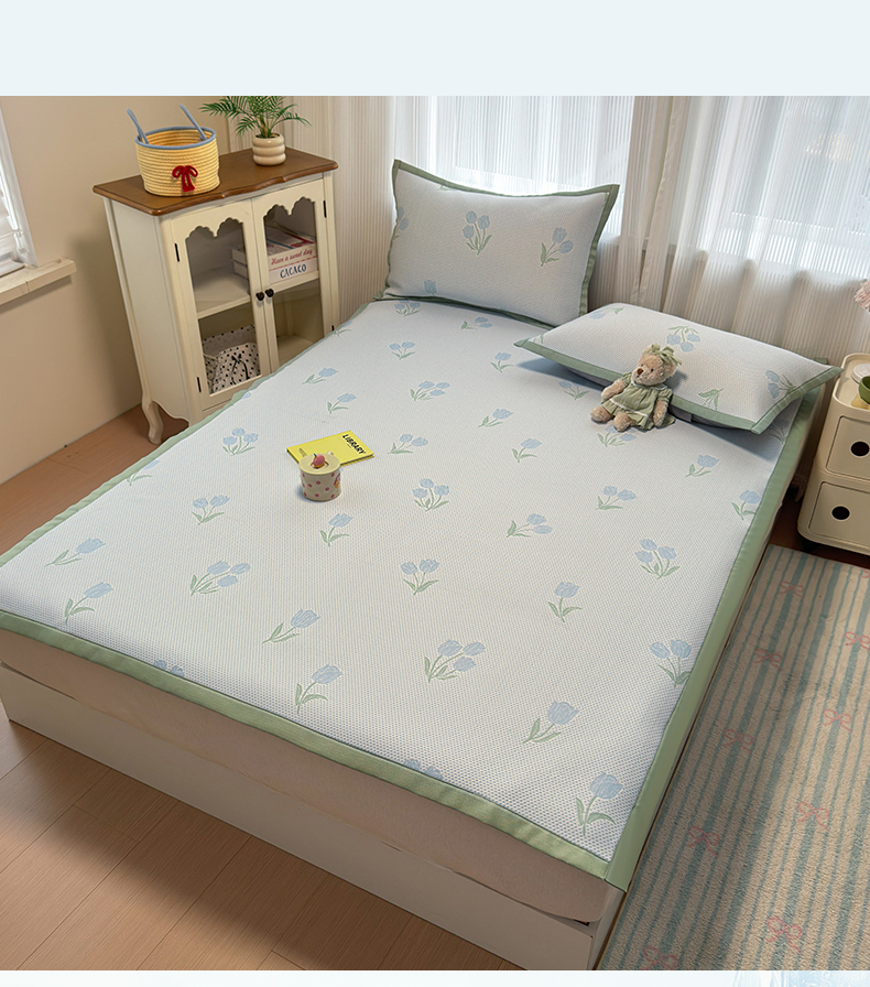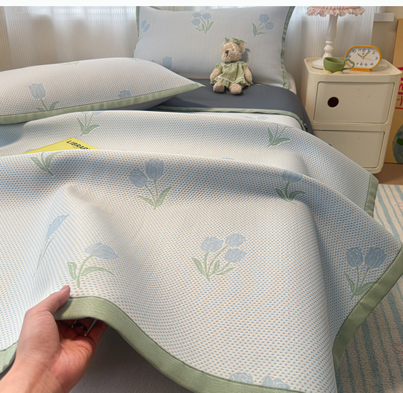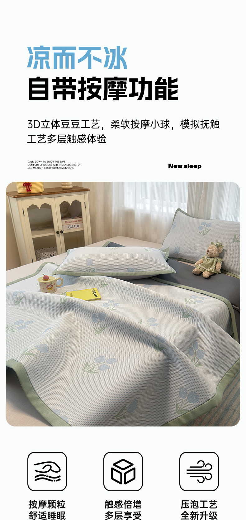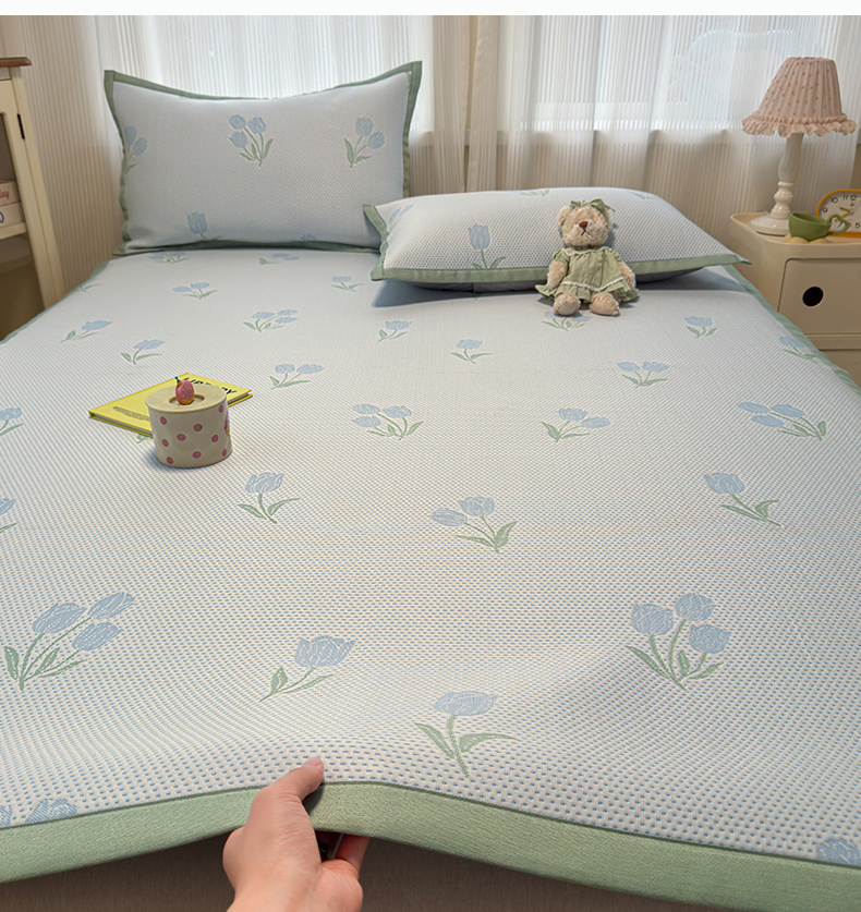 亿梵家居 2026春夏新款冰豆豆PE高分子凉席 花间梦-蓝