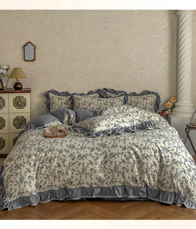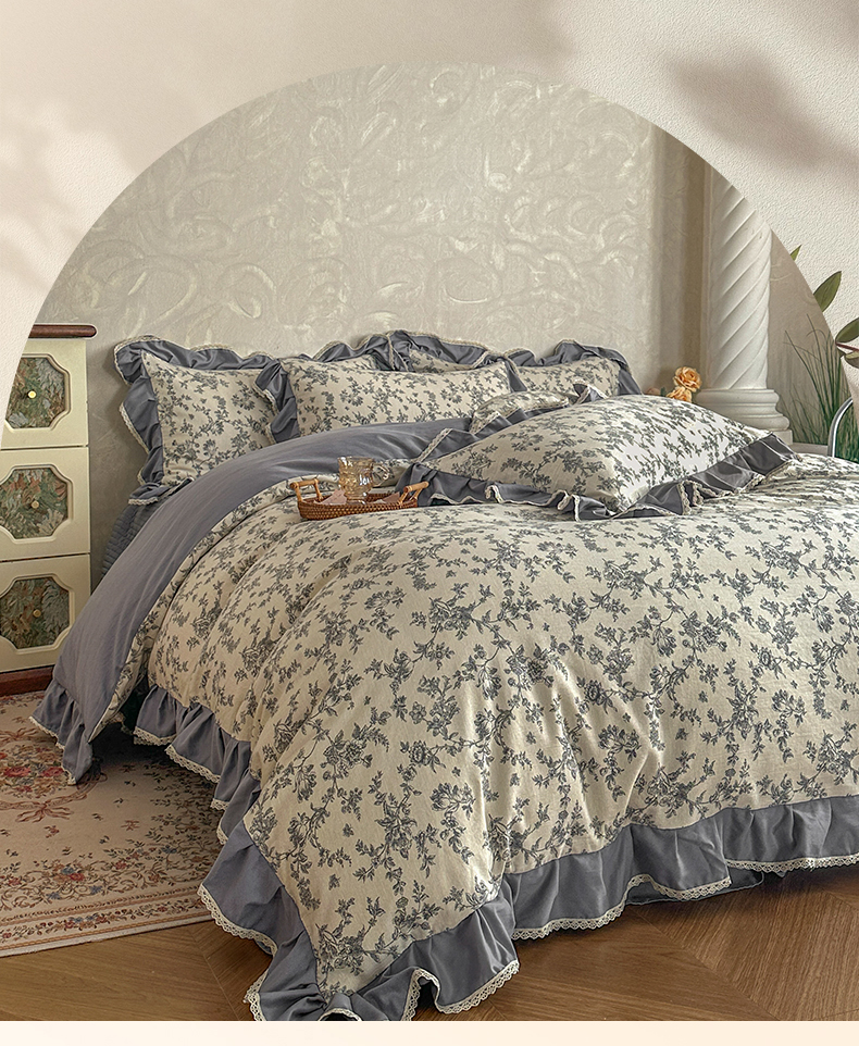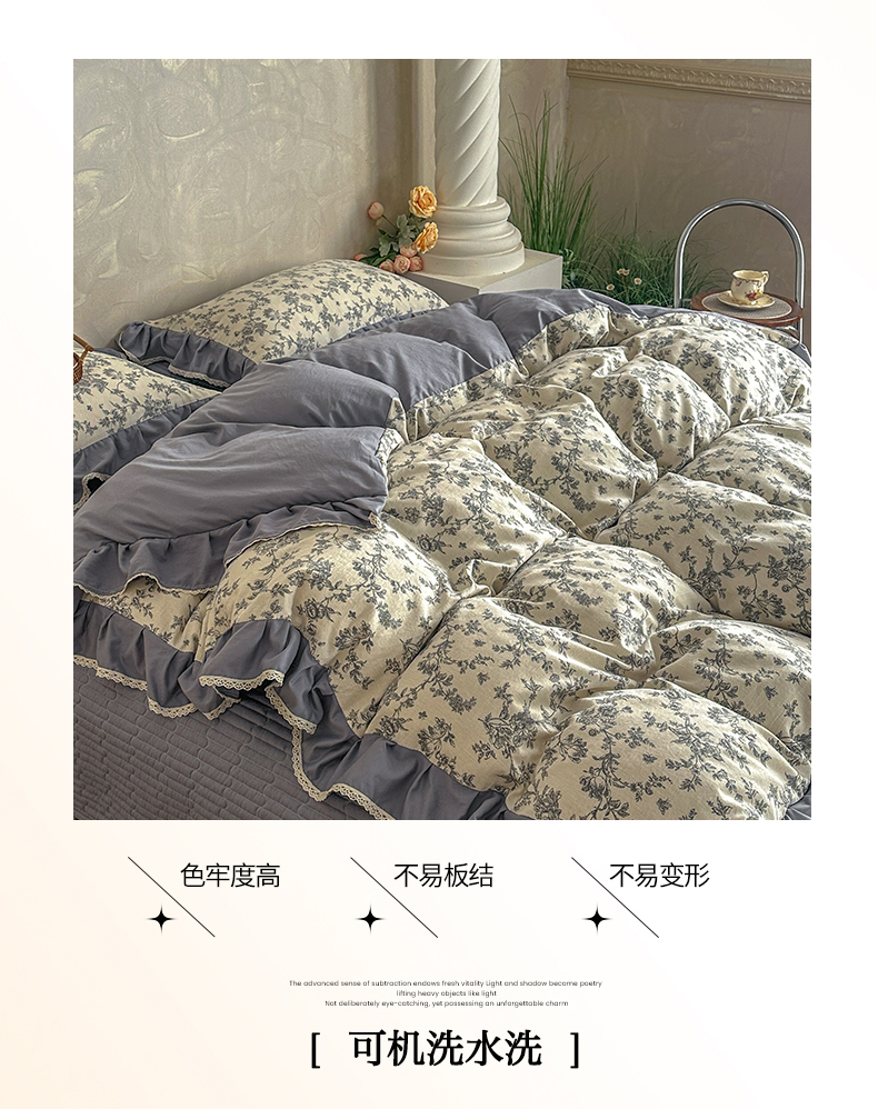 (总)星光耀 2026春夏新品加厚皱皱纱床盖四件套系列,娇艳百合,波西米亚,繁华似锦,粉紫玫瑰,格调,花季,花素,皇冠,灰咖小格,少女蝴蝶结,小美好-灰,小美好-咖