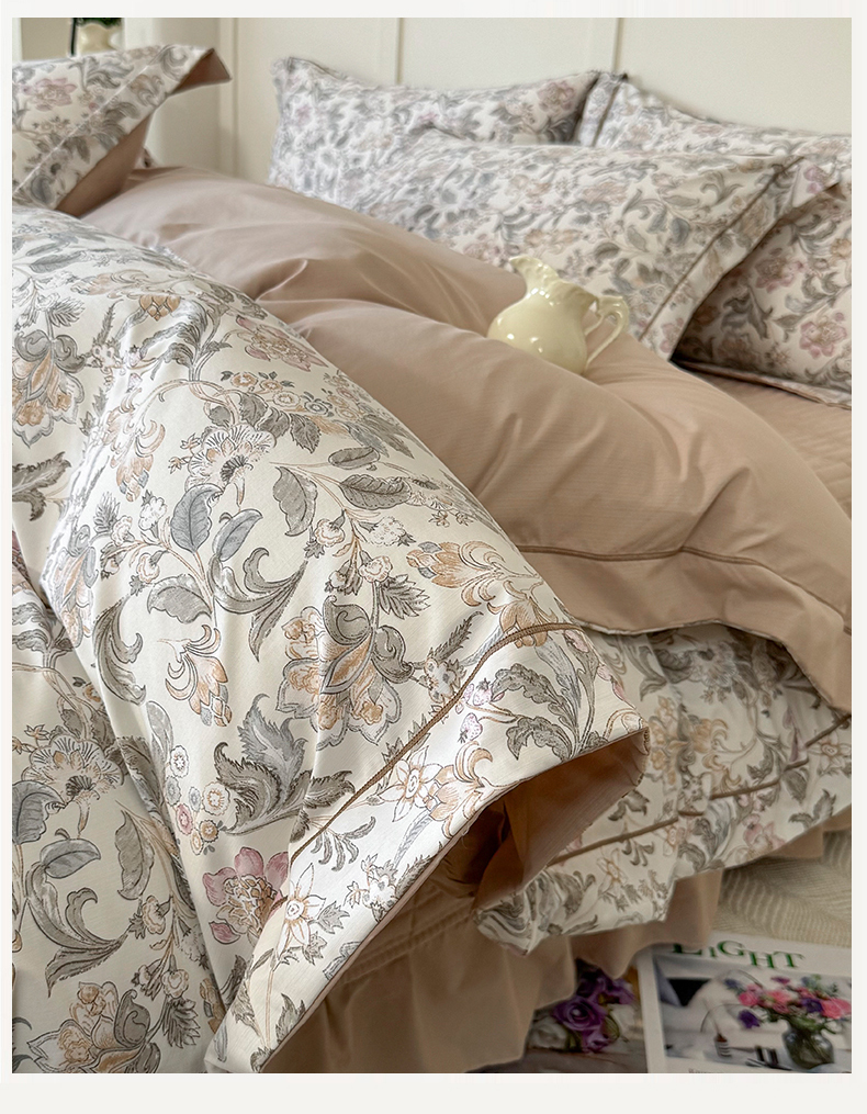 (总)星光耀 2026新款A类高克重斜纹云柔棉床盖四件套,茶礼·远山紫,茶礼·梅子红,边庭,禅弥,花棠,岚语