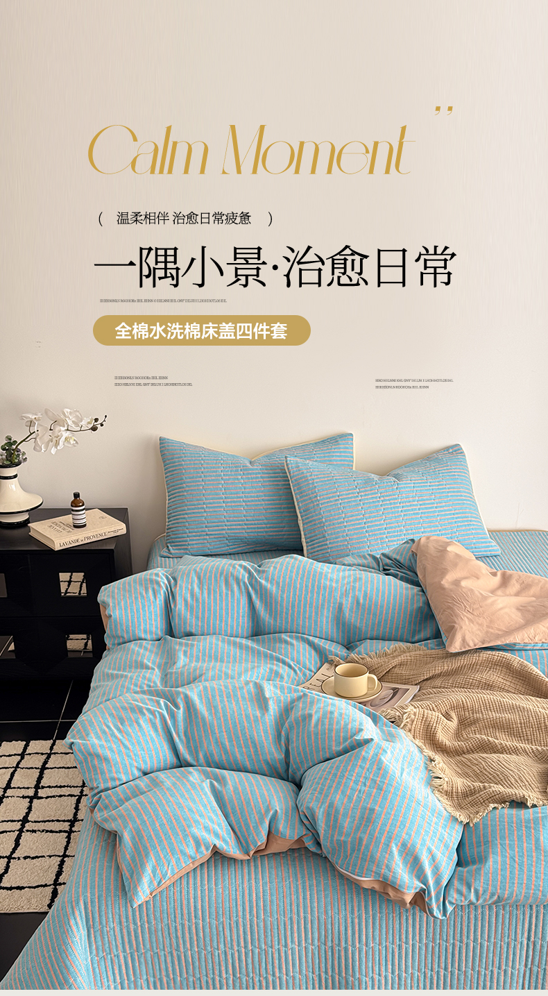 当前位置: 91家纺网 > 商品网购 > 床品套件 > 四件套 > 全棉普通四件套 > 妮可 2026新款全棉色织水洗棉床盖四件套-伦敦生活系列 伦敦生活-蓝卡