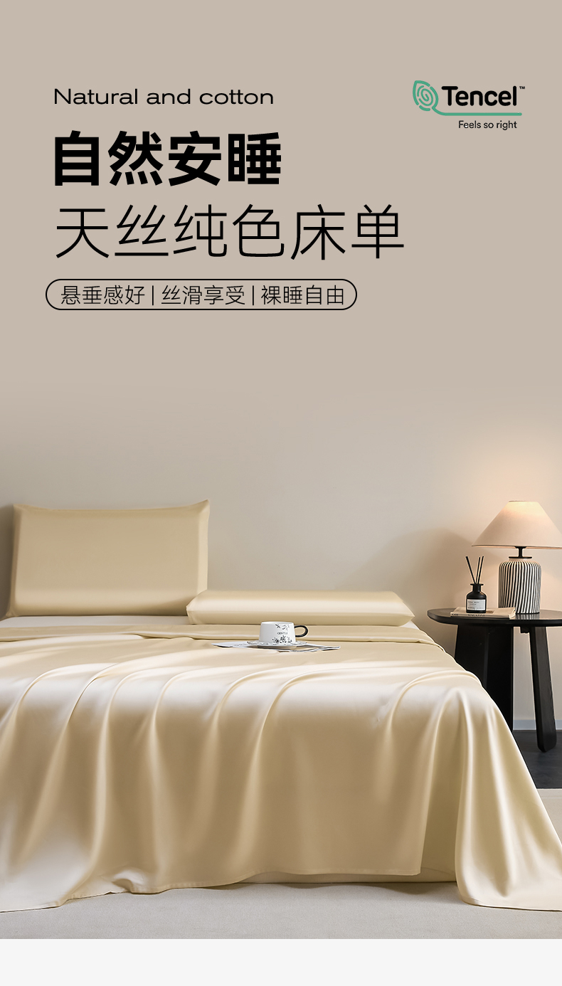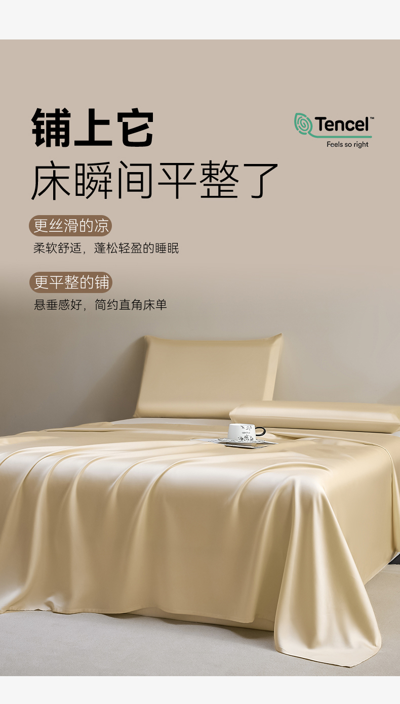 DC 2026新款莱赛尔天丝纯色单品床单 卡其