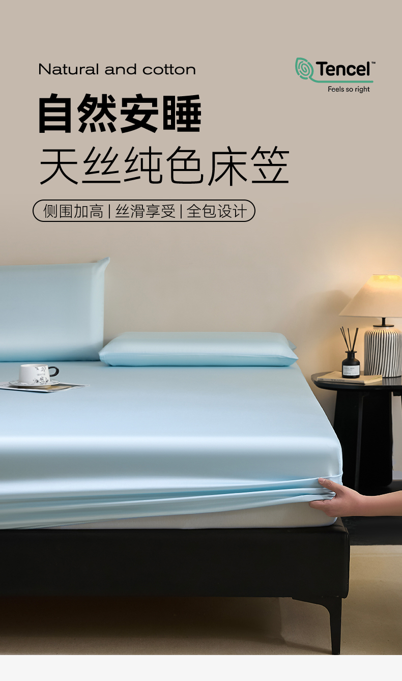 DC 2026新款莱赛尔天丝纯色单品床笠 淡海蓝