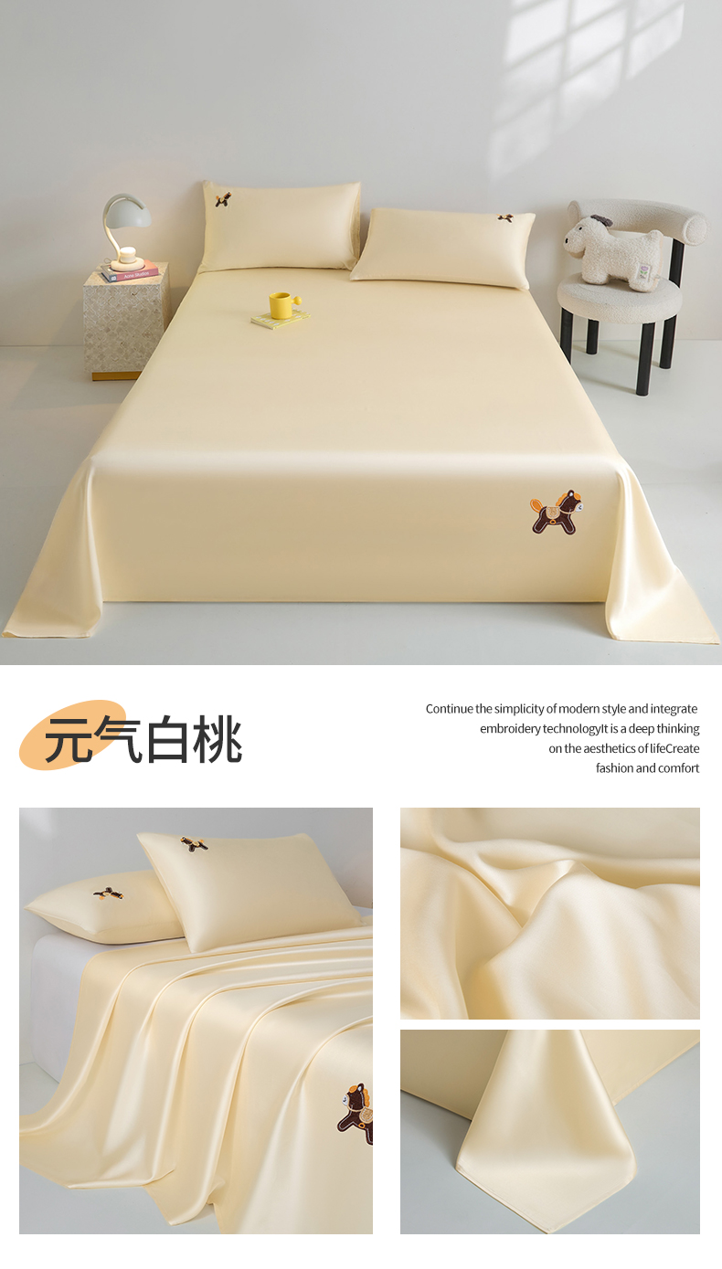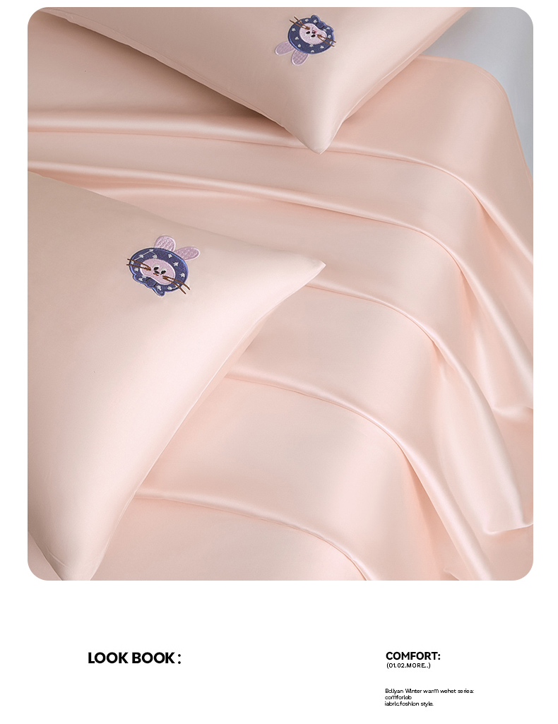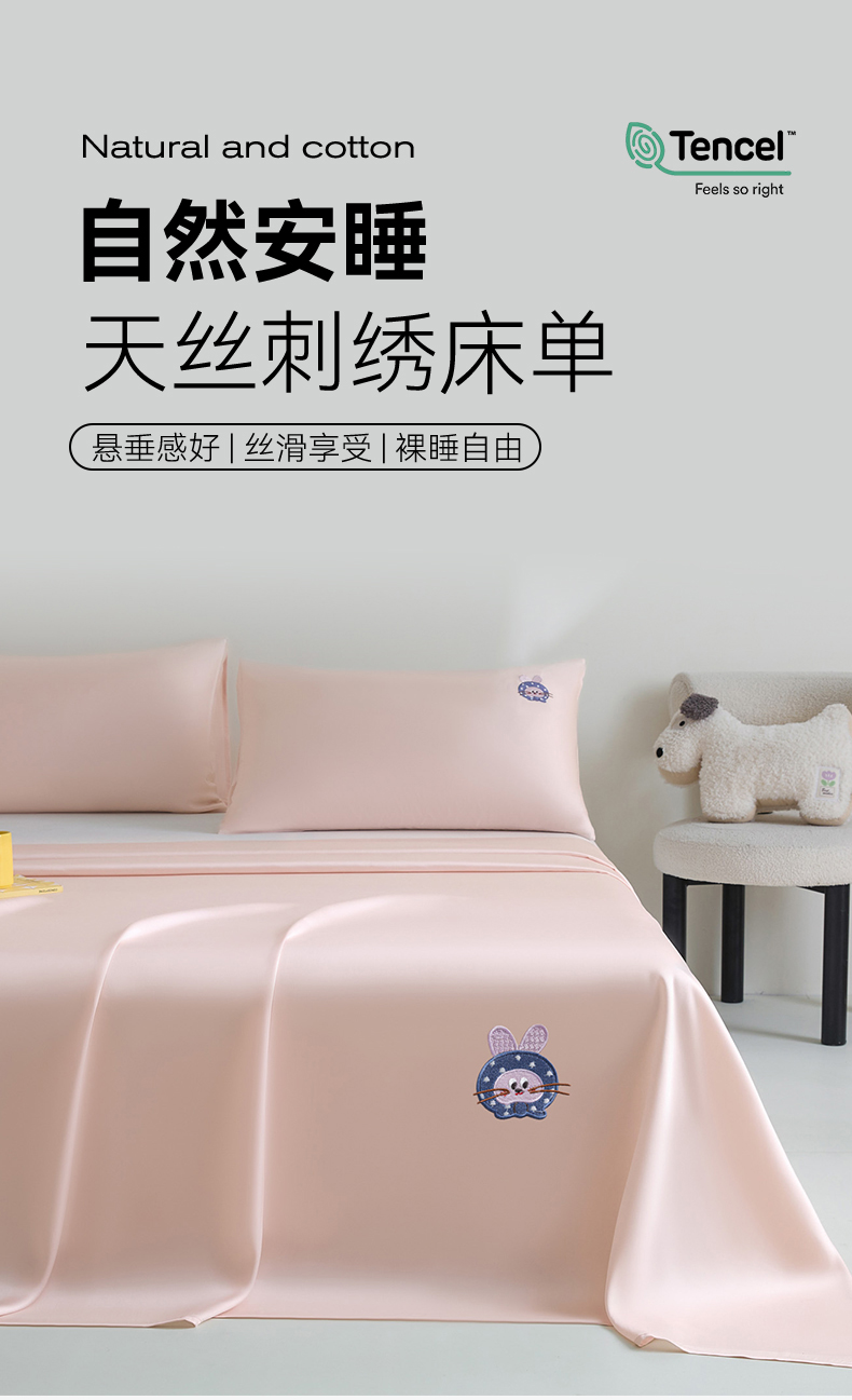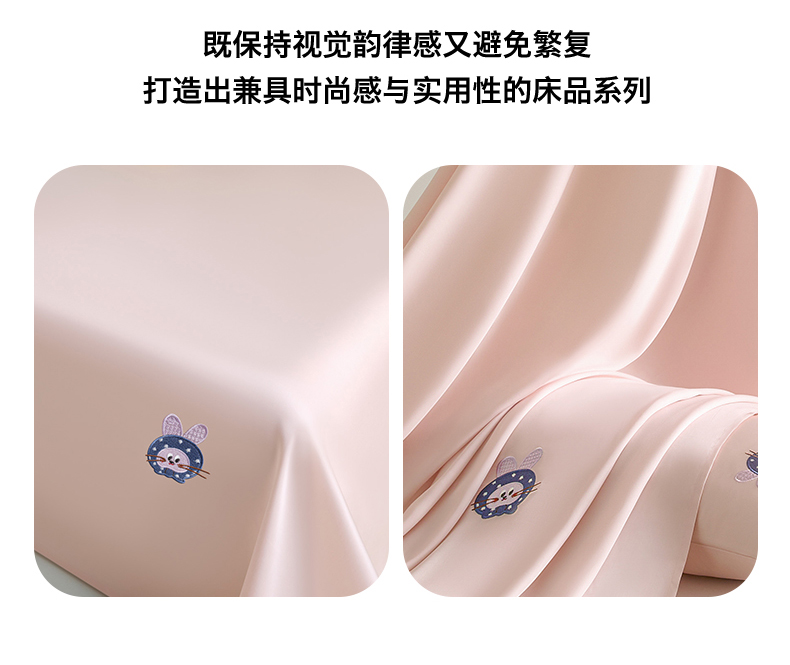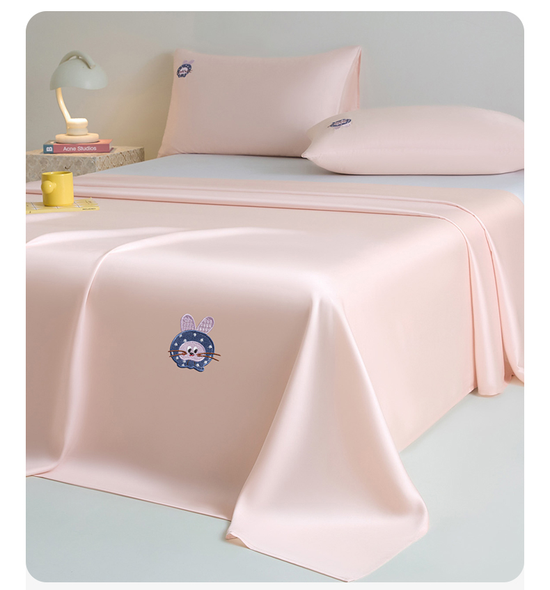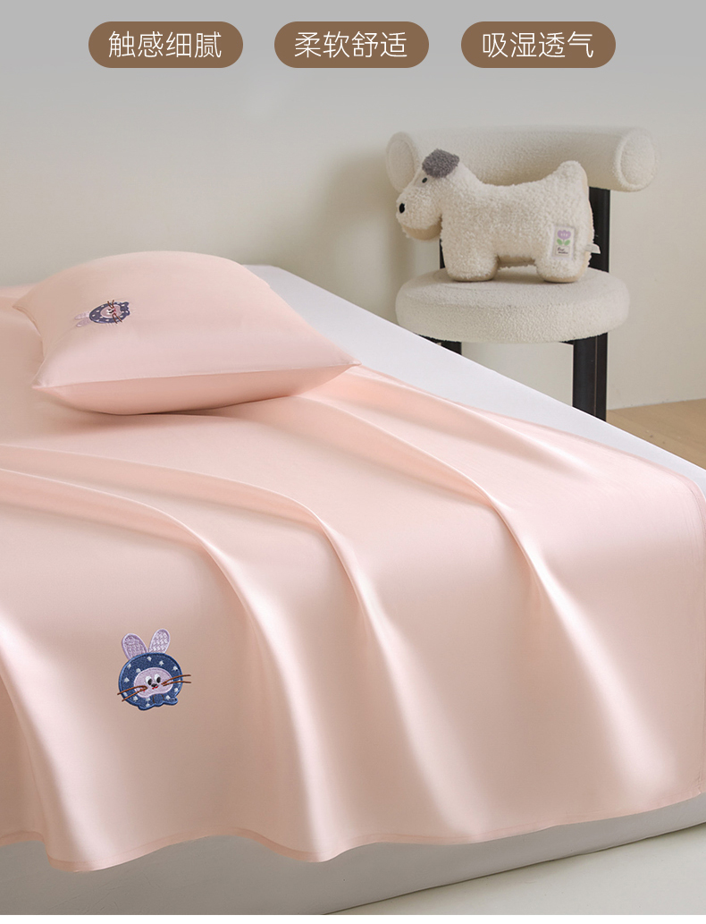 商品名称:DC 2026新款莱赛尔天丝卡通刺绣单品床单 冰雾粉
