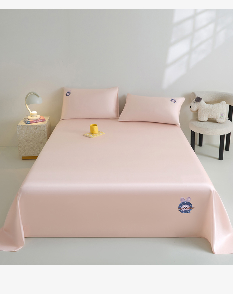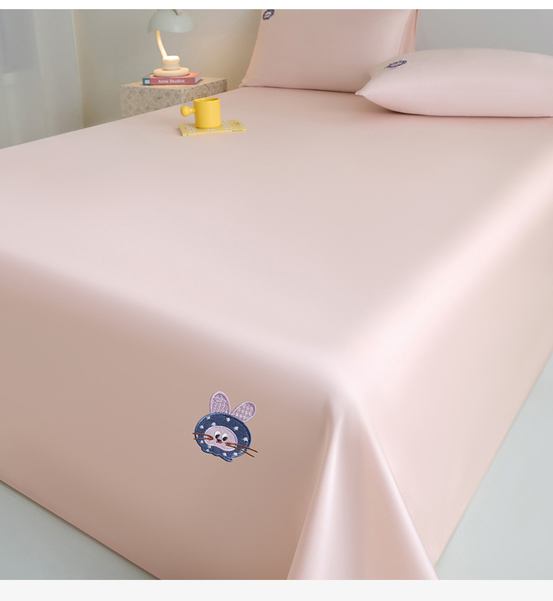 DC 2026新款莱赛尔天丝卡通刺绣单品床单 冰雾粉