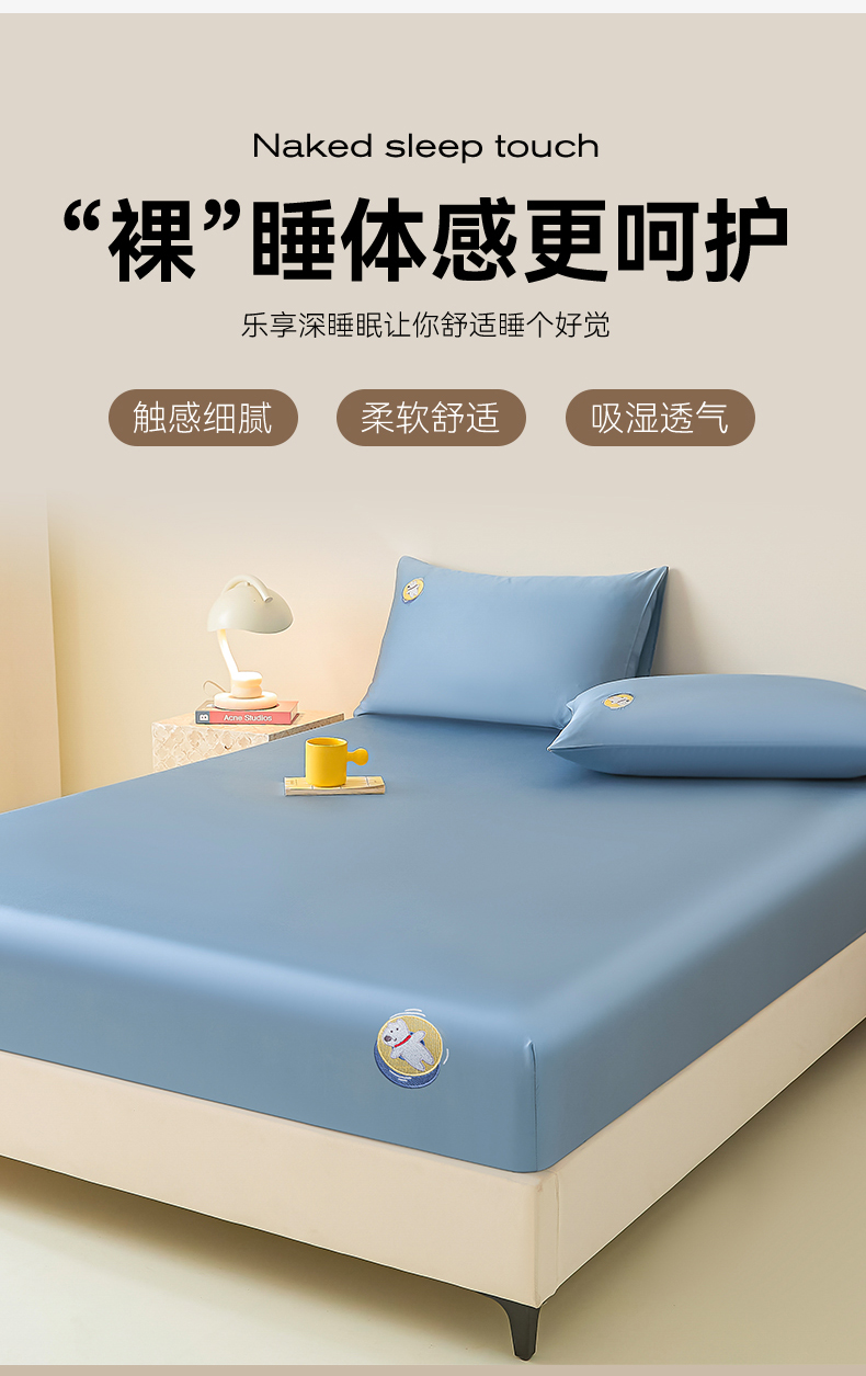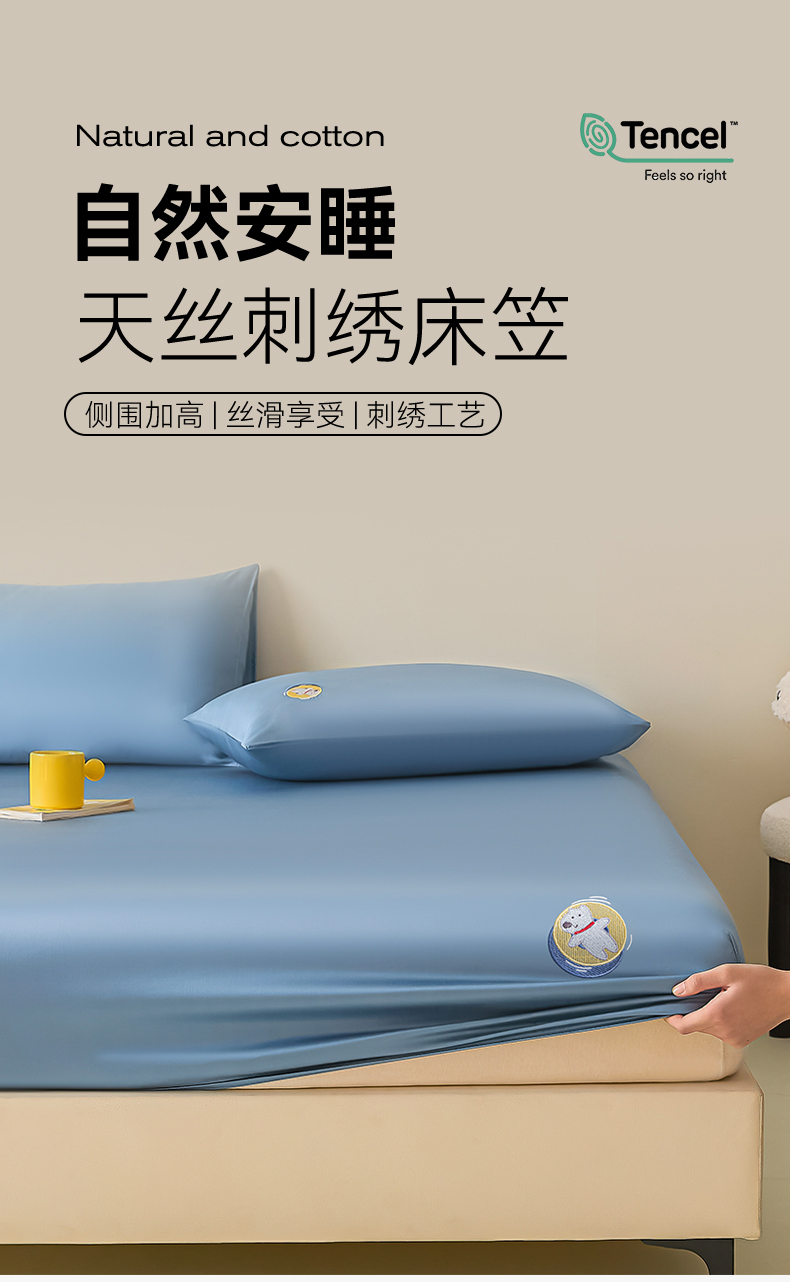 DC 2026新款莱赛尔天丝卡通刺绣单品床笠 梵高蓝