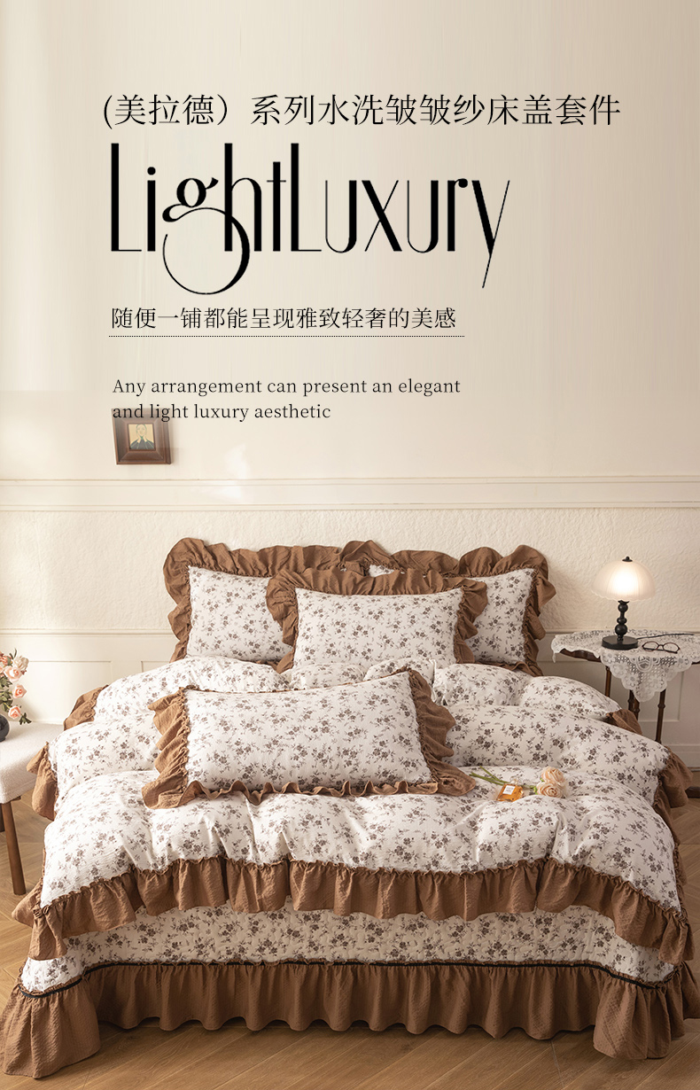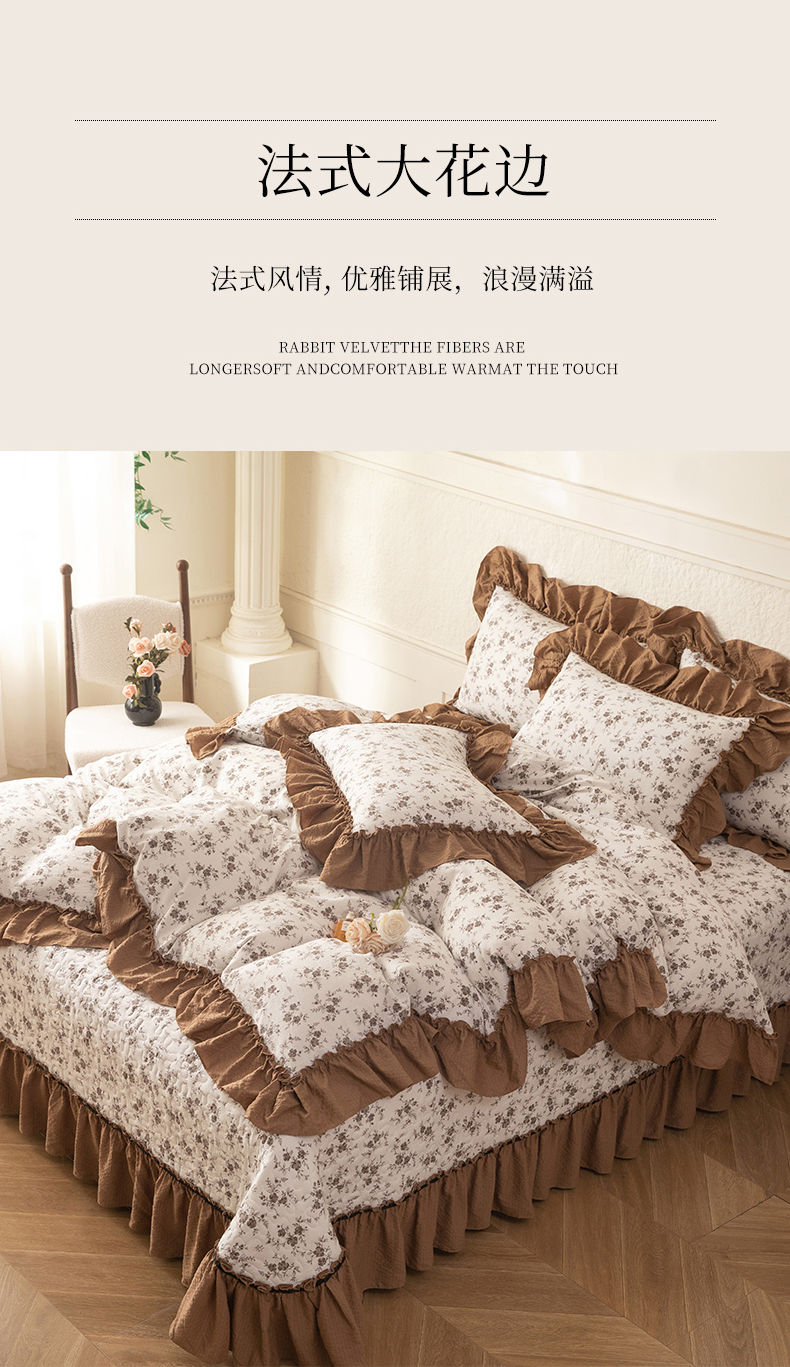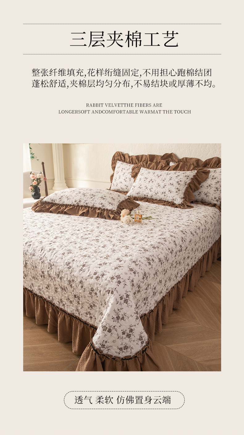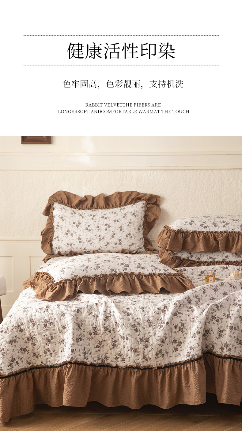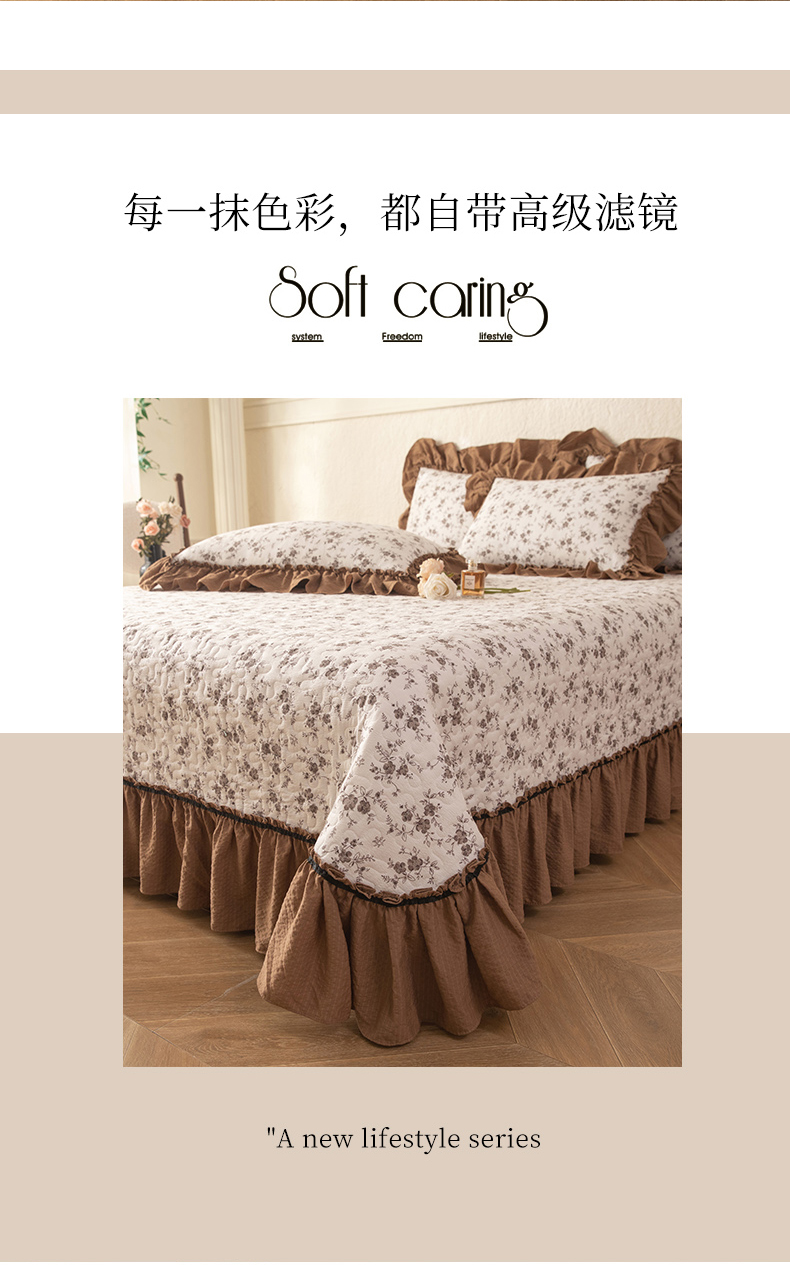 • 91家纺网 家纺一手货源 找家纺 贝凯瑞 2026新款(美拉德)系列双层纱木棉水洗棉法式花边单件三件四件床盖 美拉德-玫瑰园