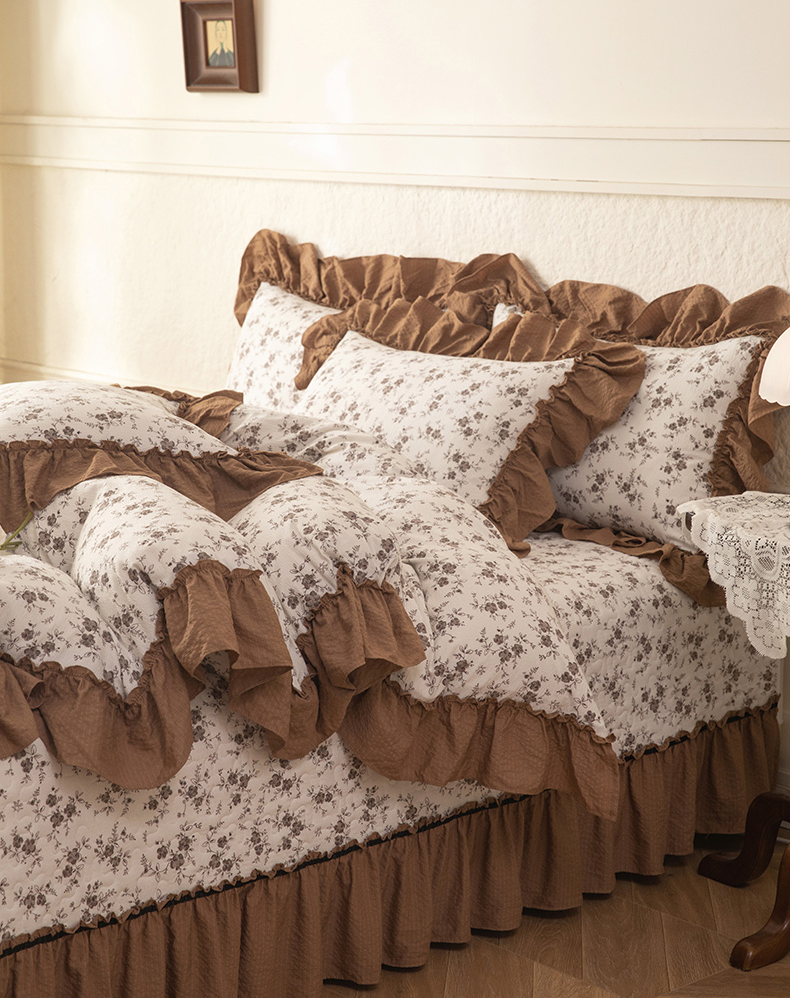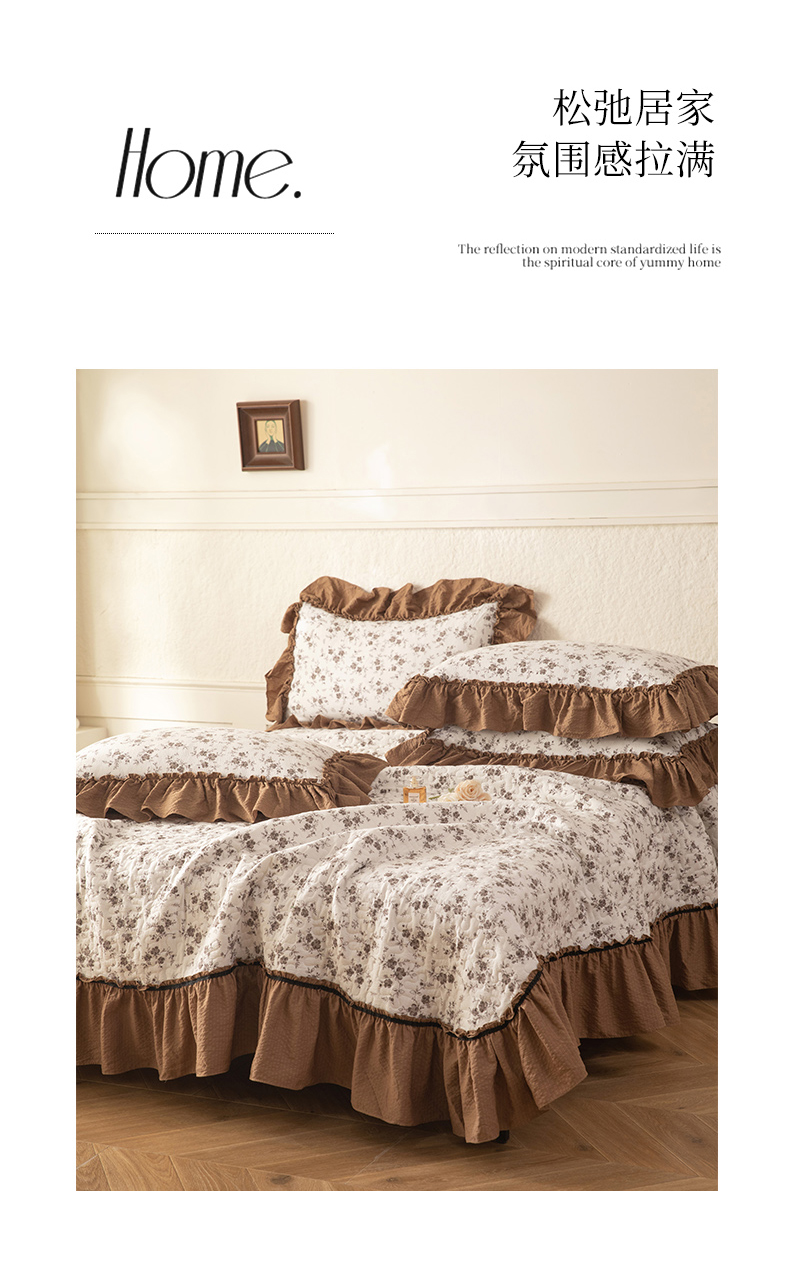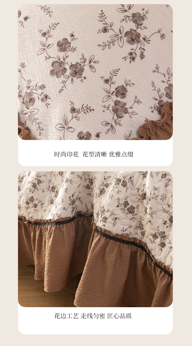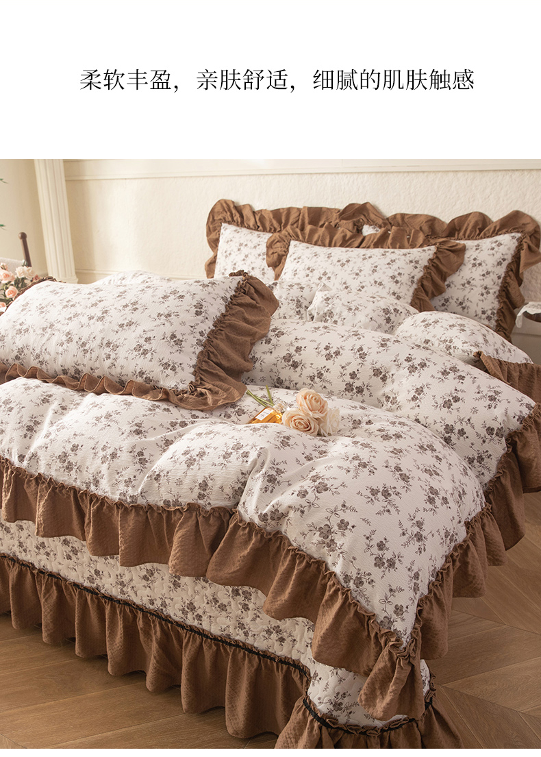(总)贝凯瑞 2026新款双层纱木棉水洗棉法式复古花边床盖单件三件四件套-焦糖系列,焦糖蝴蝶结,焦糖花漾,焦糖蓝蝶,焦糖熊,焦糖樱桃,摩卡秘境