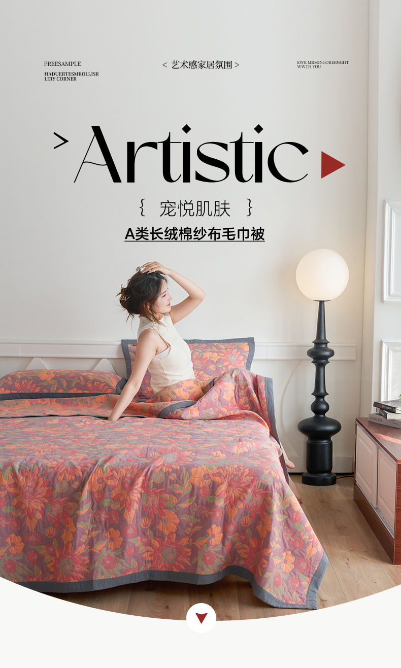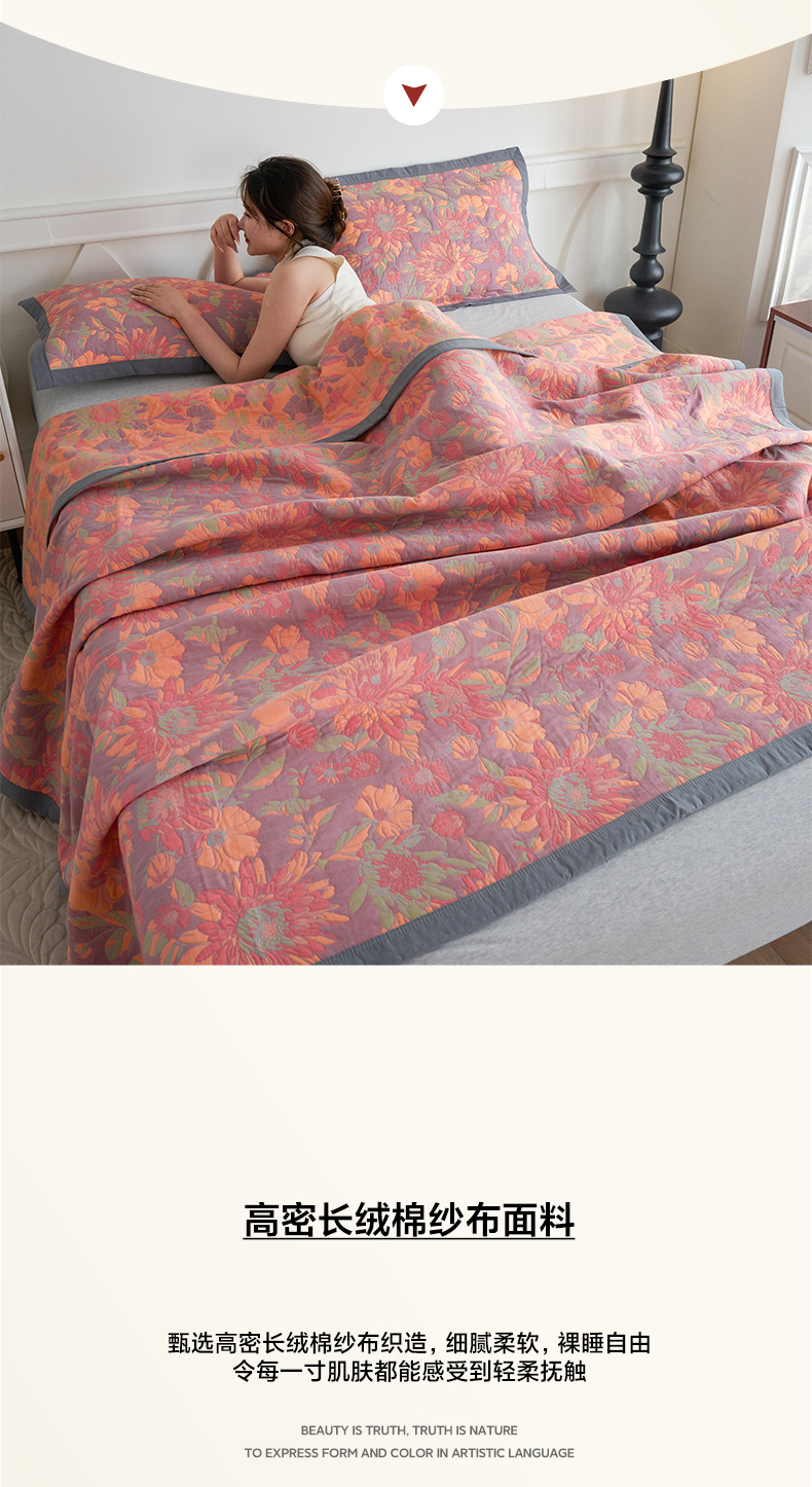 • 91家纺网 家纺一手货源 找家纺 棠薇家纺 2026新款纱布盖毯长绒棉纱布毛巾被夏被单双人棉纱盖毯毛巾毯夏季夏凉被空调被毯子可铺可盖床盖 花团锦簇
