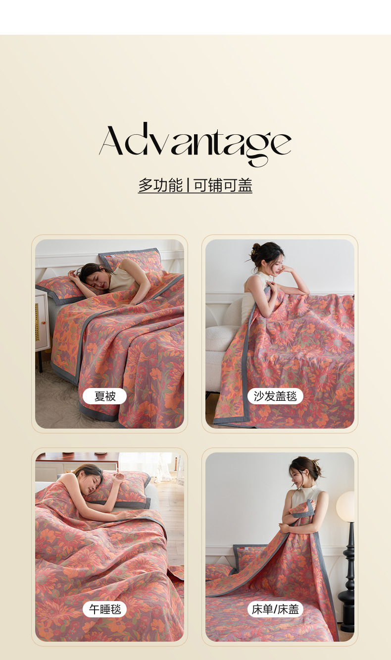 当前位置: 91家纺网 > 商品网购 > 被子 > 夏被 > 棠薇家纺 2026新款纱布盖毯长绒棉纱布毛巾被夏被单双人棉纱盖毯毛巾毯夏季夏凉被空调被毯子可铺可盖床盖 花团锦簇
