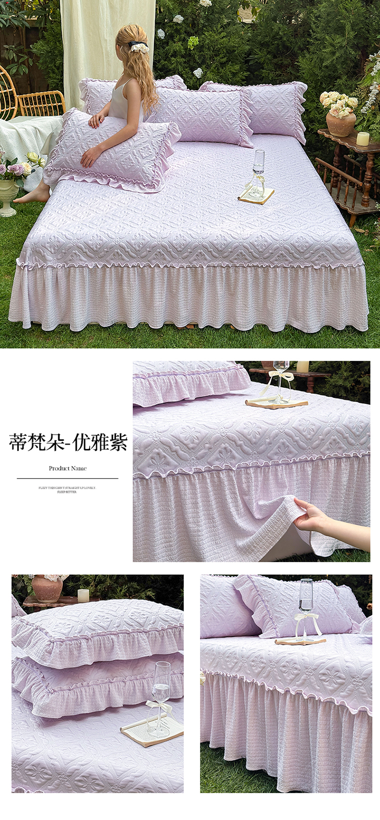 (总)乐朵家居 2025新款 安娜 牛奶绒 床单款夹棉床盖四件套(床单控价268床盖控价298),安娜-抹茶绿,安娜-丁香紫,安娜-奶油白,安娜-浅卡其,安娜-浅粉玉