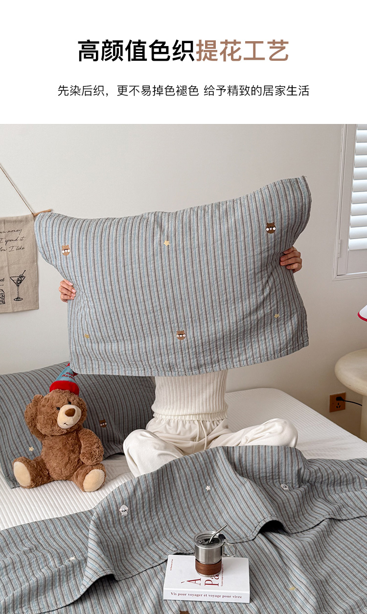 (总)沐瑟家纺 2025新款简约风多功能纱布盖毯纱布毯子毛巾被床盖沙发巾单毯枕巾枕套三件套,H本色,H橙色,H咖色,大马士革本色