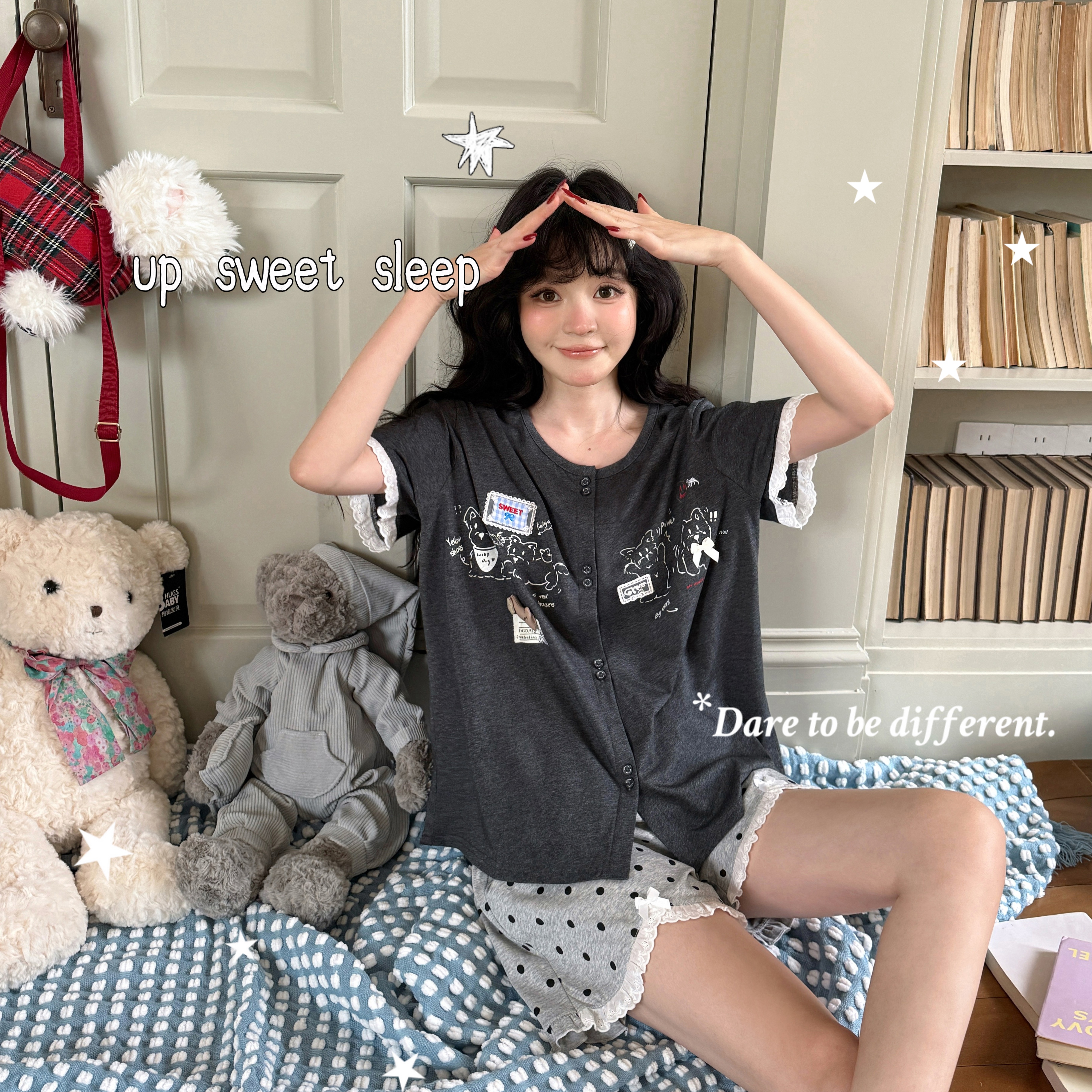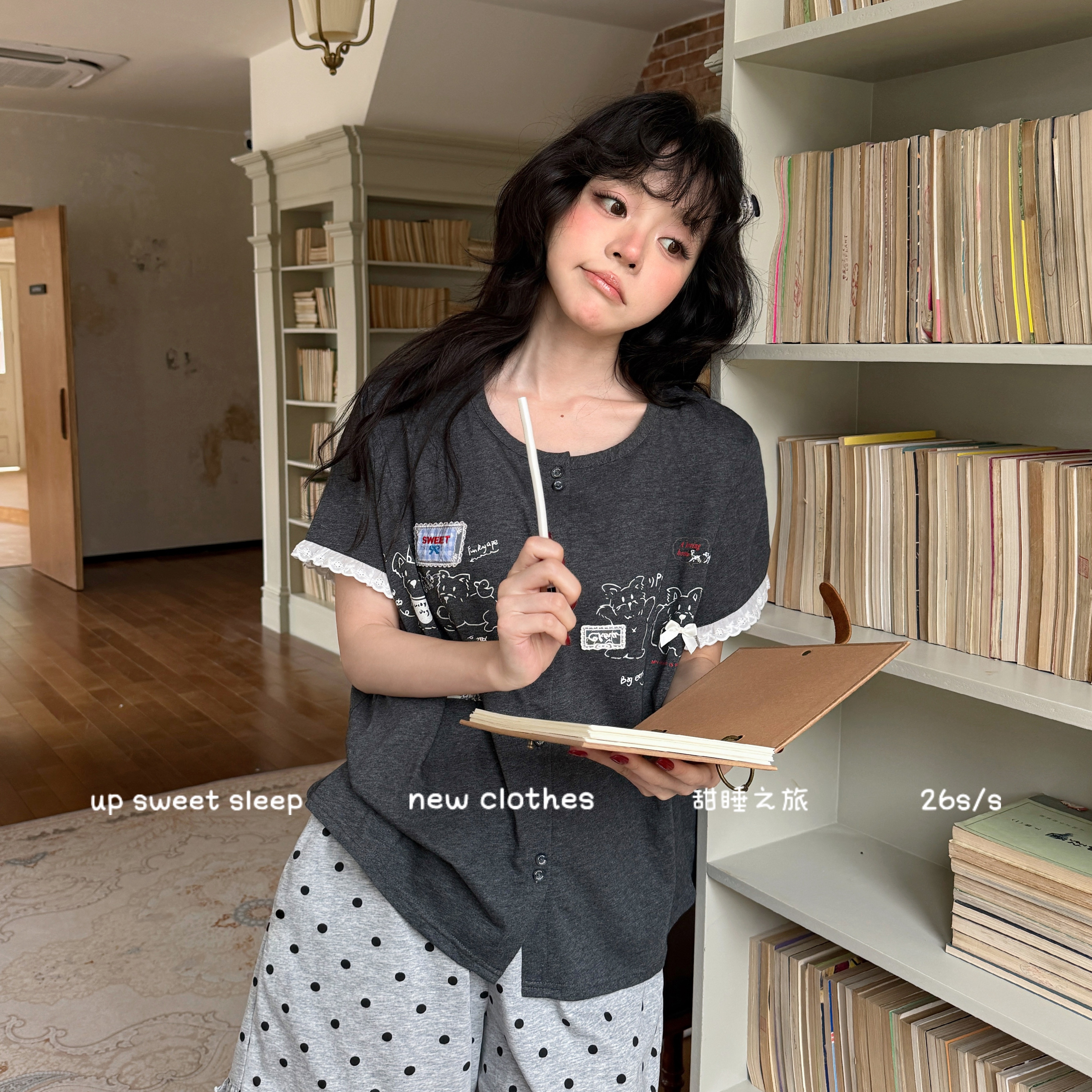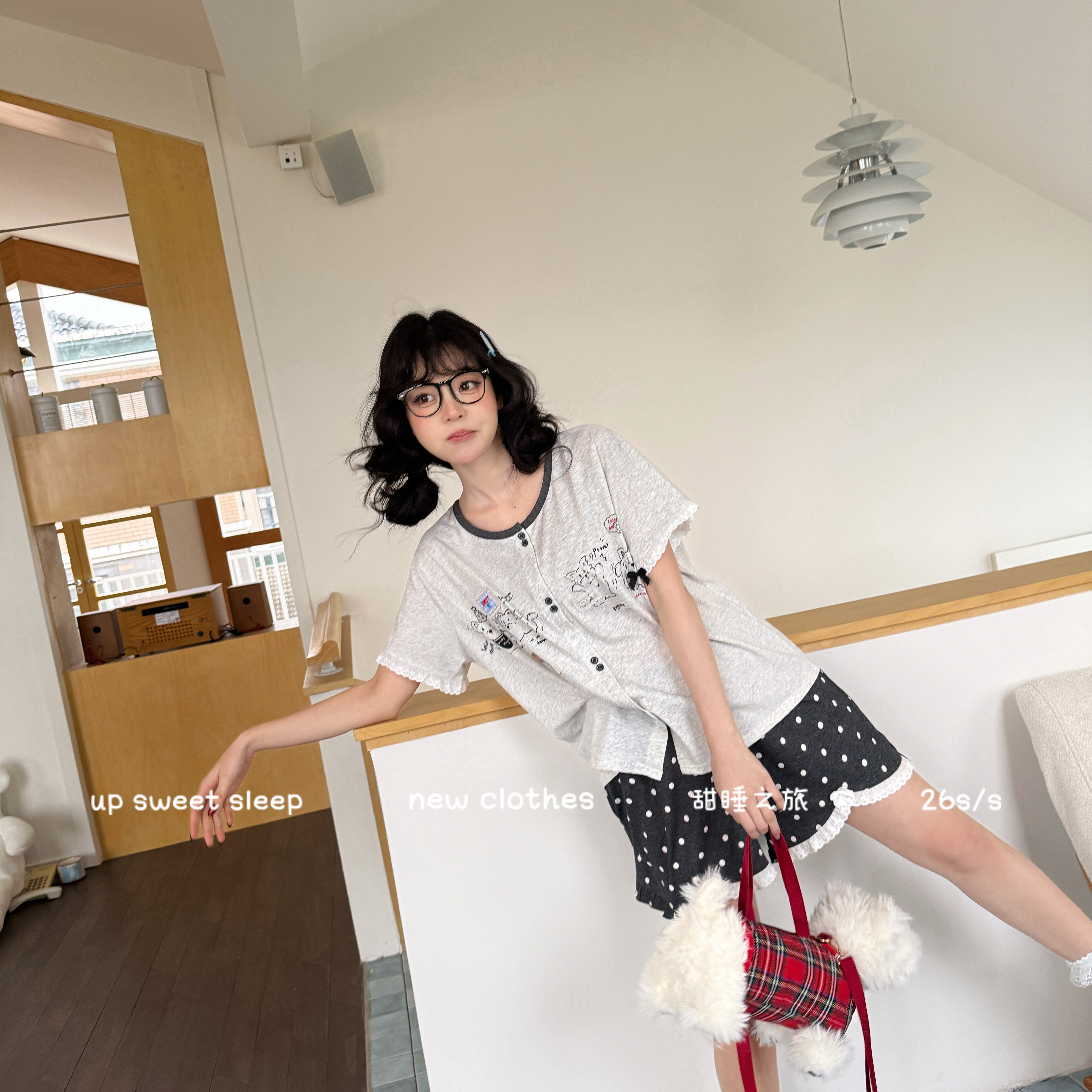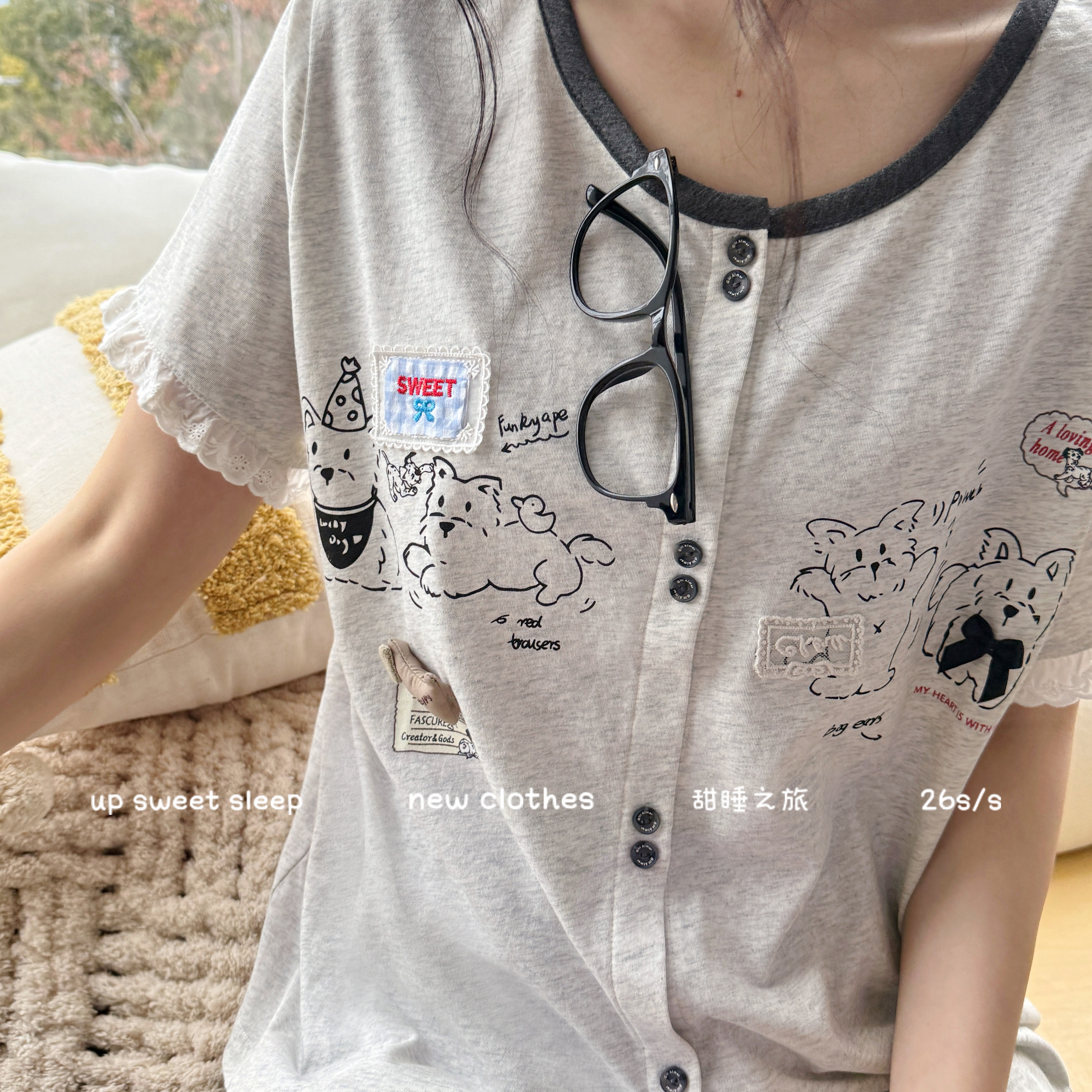 妍景家居生活馆 2026新款睡衣短裤两件套大耳狗系列 短裤大耳狗-浅灰