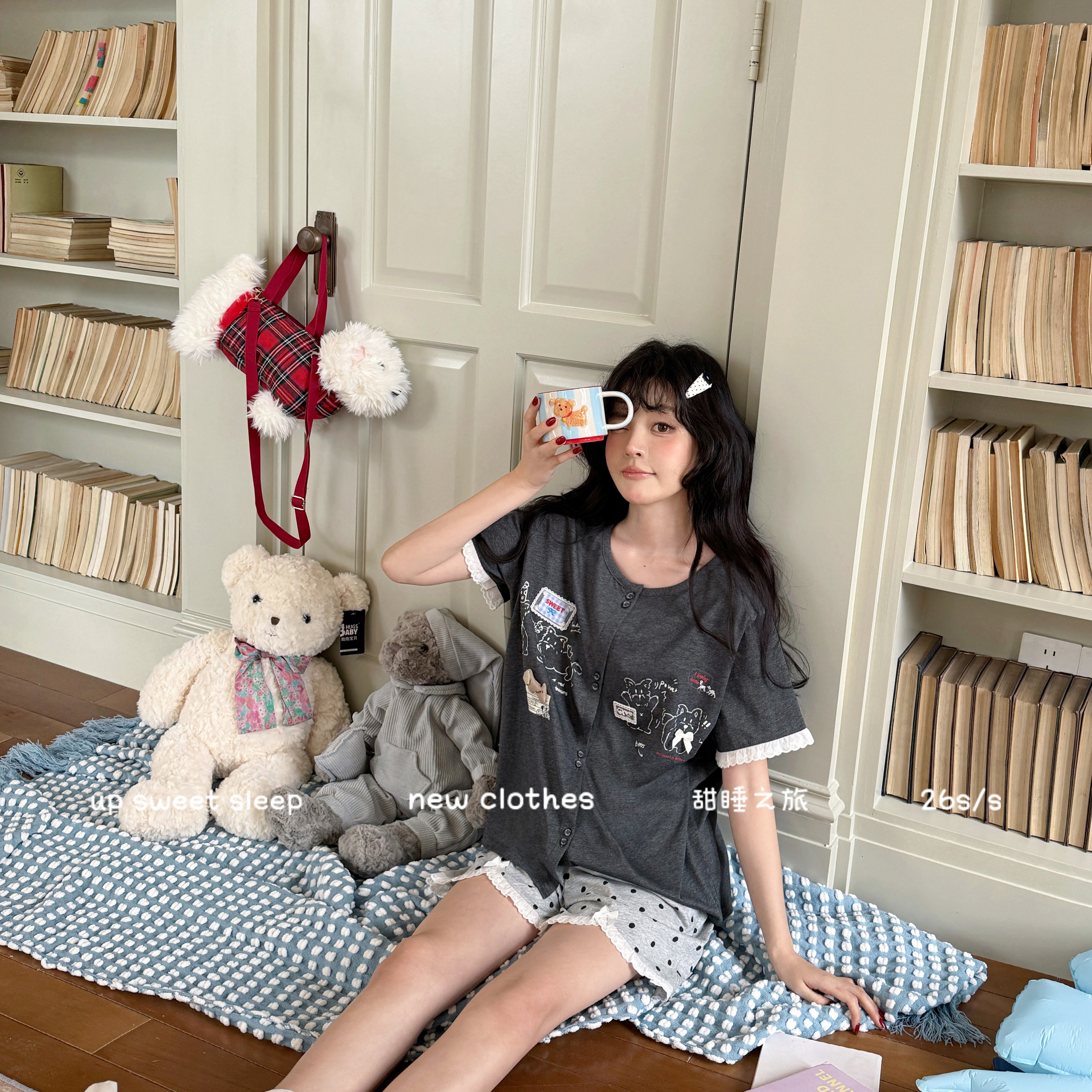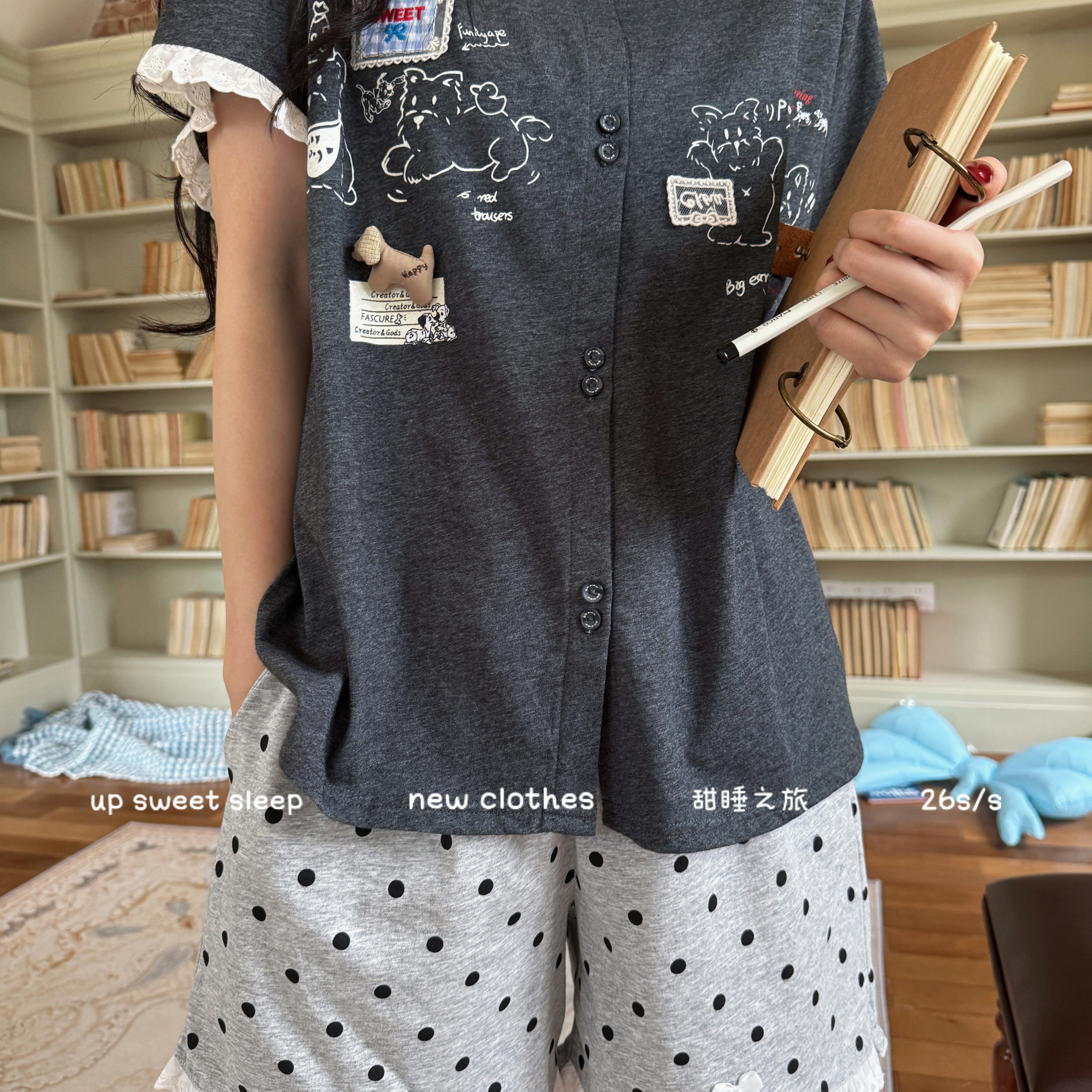 商品名称:妍景家居生活馆 2026新款睡衣短裤两件套大耳狗系列 短裤大耳狗-浅灰