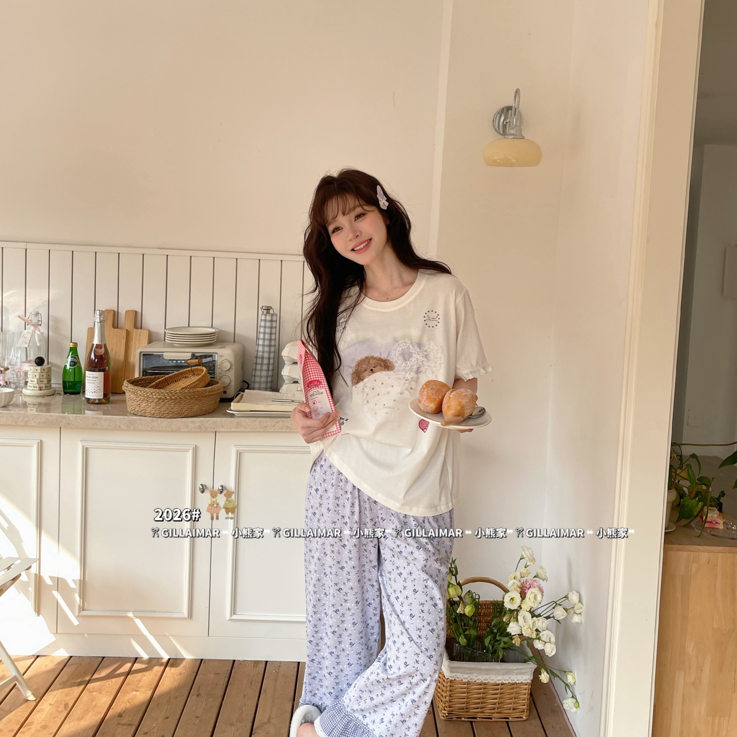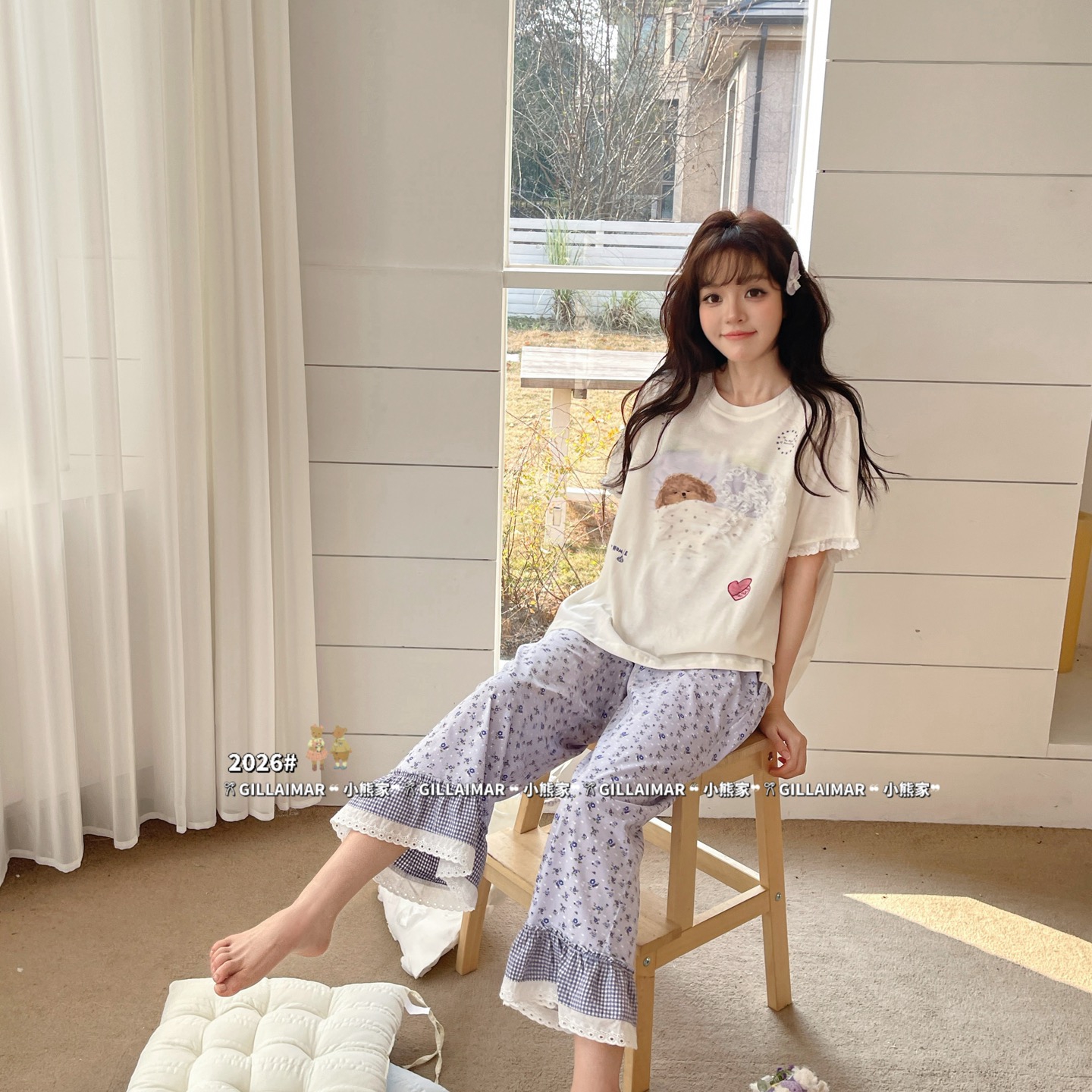(总)妍景家居生活馆 2026新款竖条小奶狗家居服,竖条小奶狗