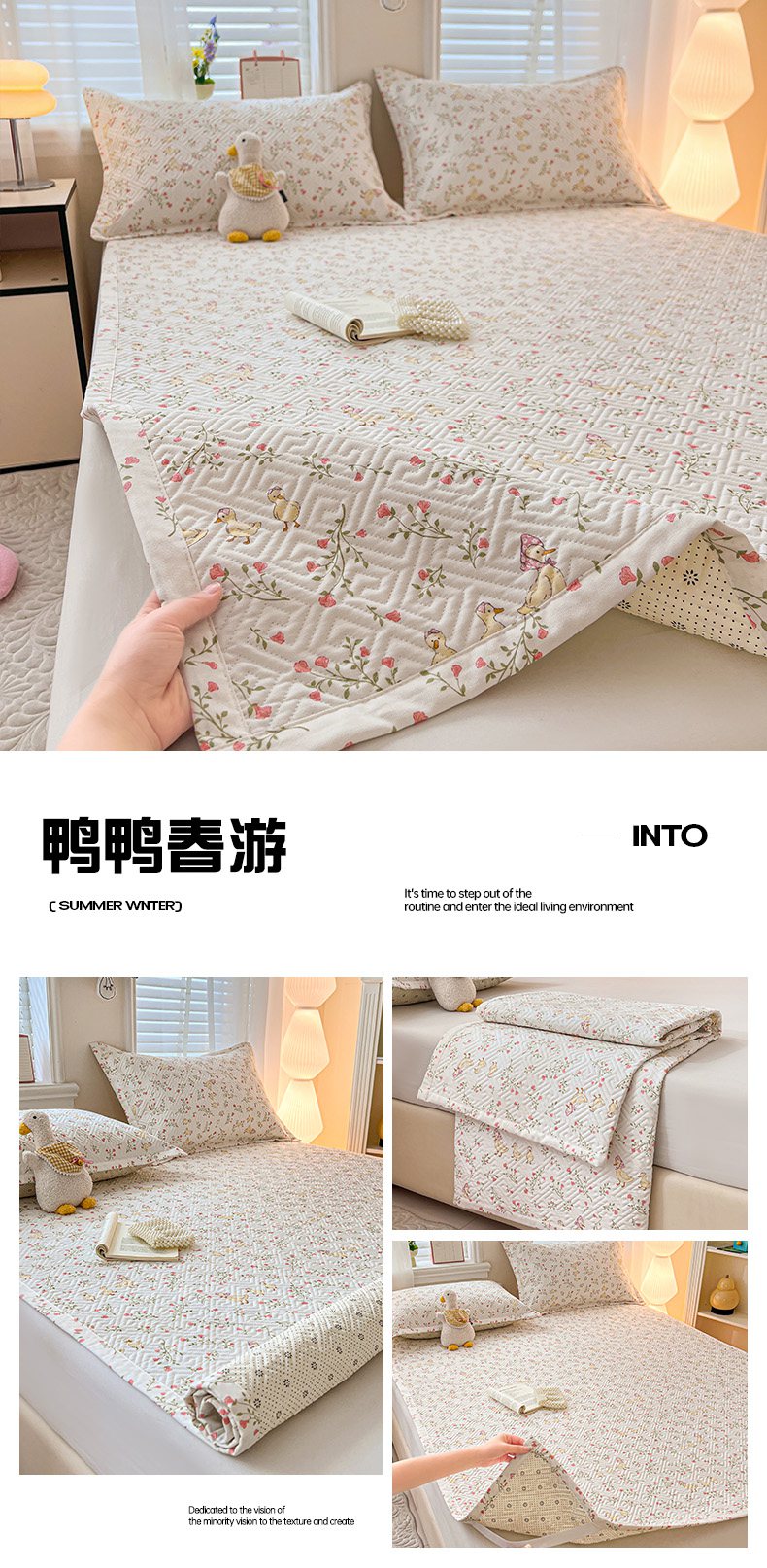 (总)忆生活家纺 2026新款A类全棉老粗布软凉席夹棉床盖可机洗,彩色波点,豹纹,海草,花漾小兔,蓝格龙宝,麦浪织纹,藤蔓兔,条纹绿,小爱心,鸭鸭春游,叶语,枝繁叶茂,组合图