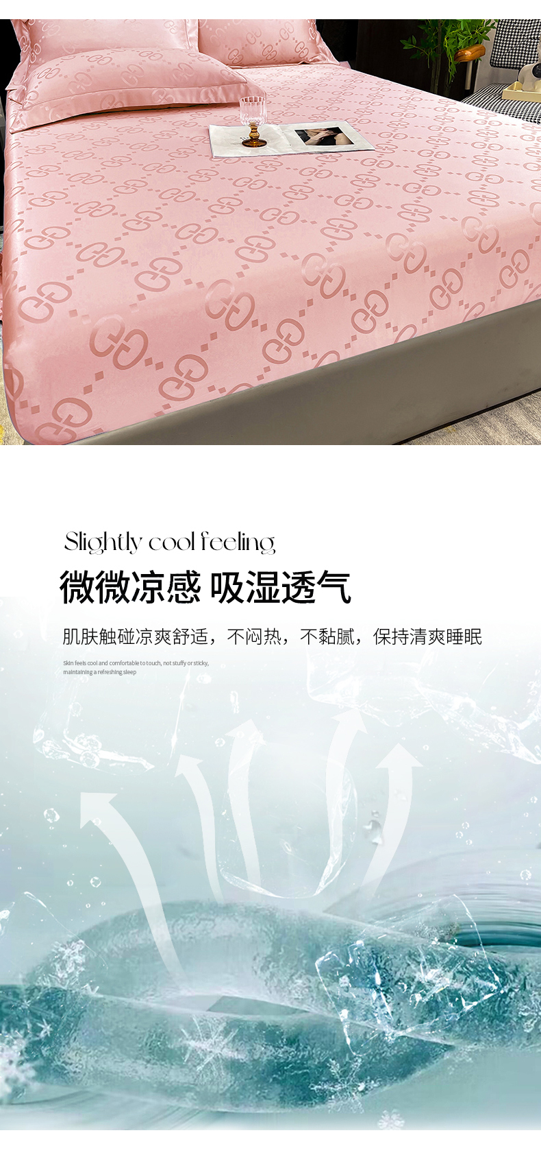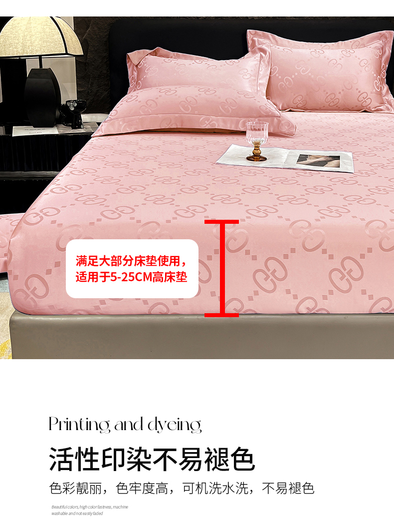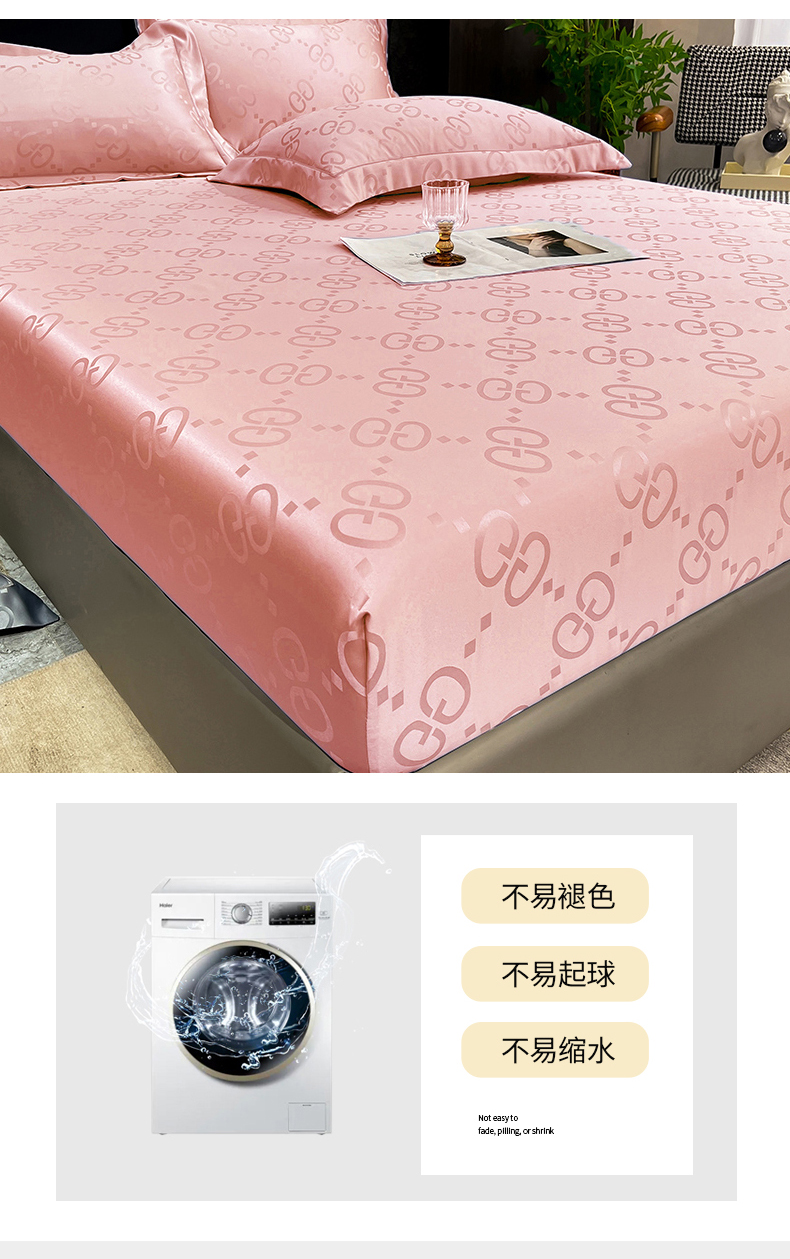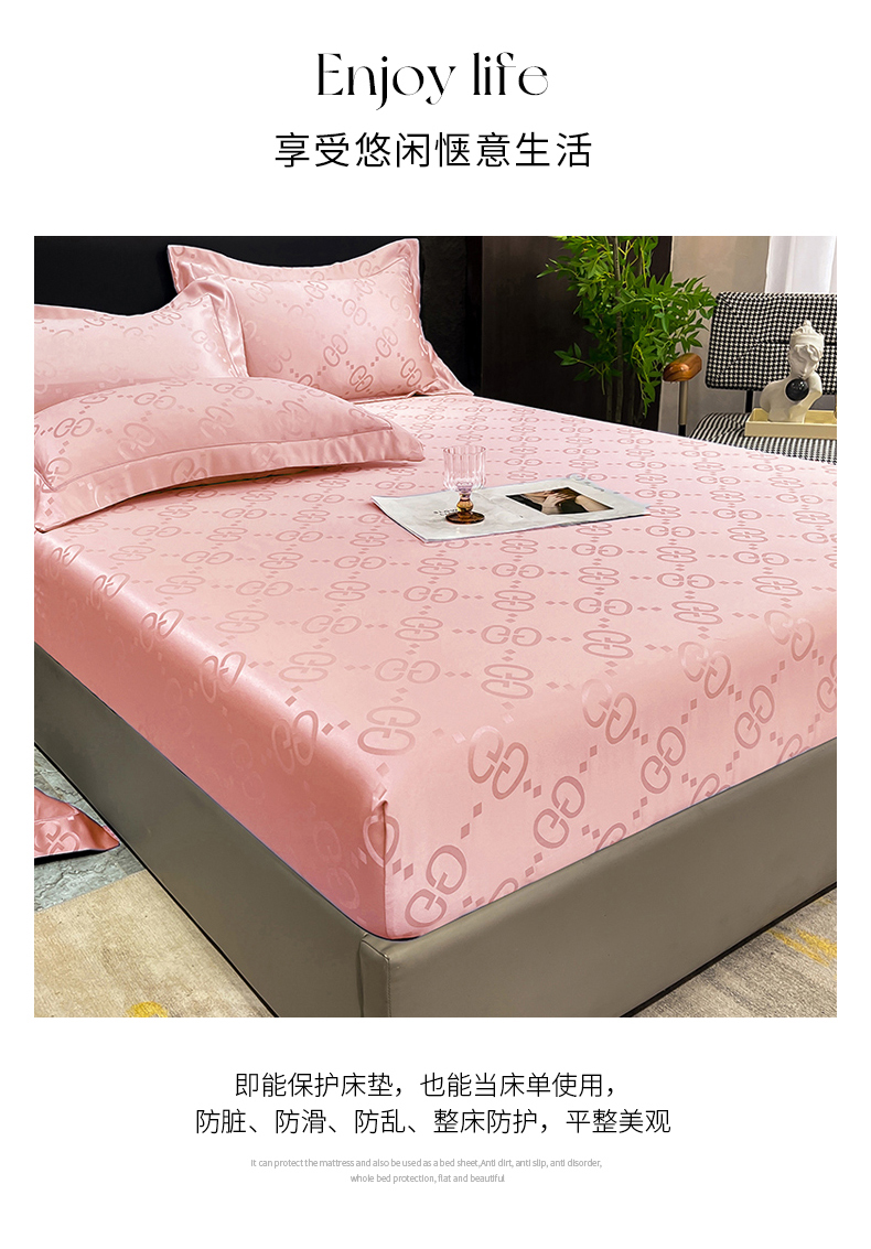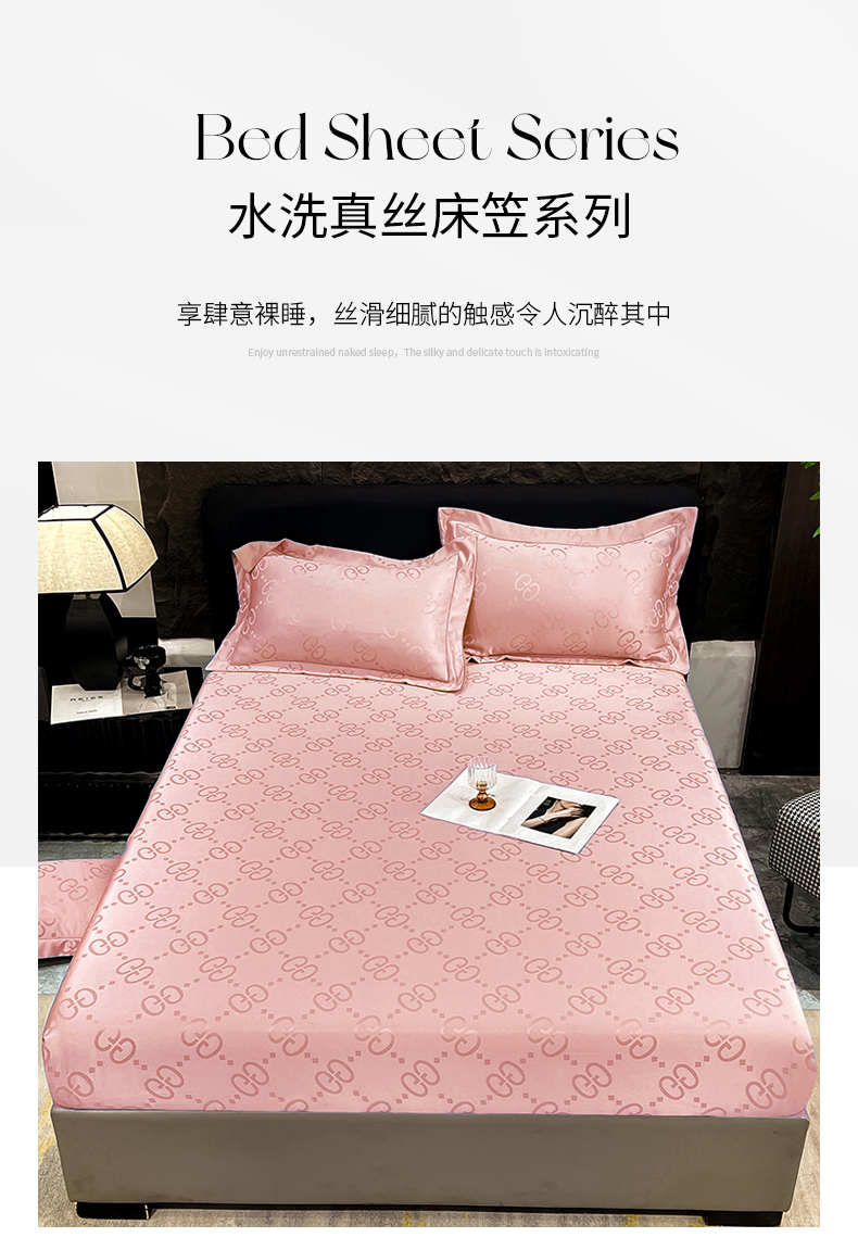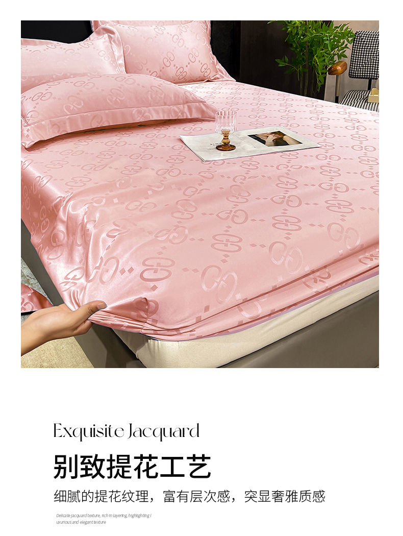 商品名称:经年 2026新款水洗真丝提花床笠单床笠床笠单件 洛克-粉玉