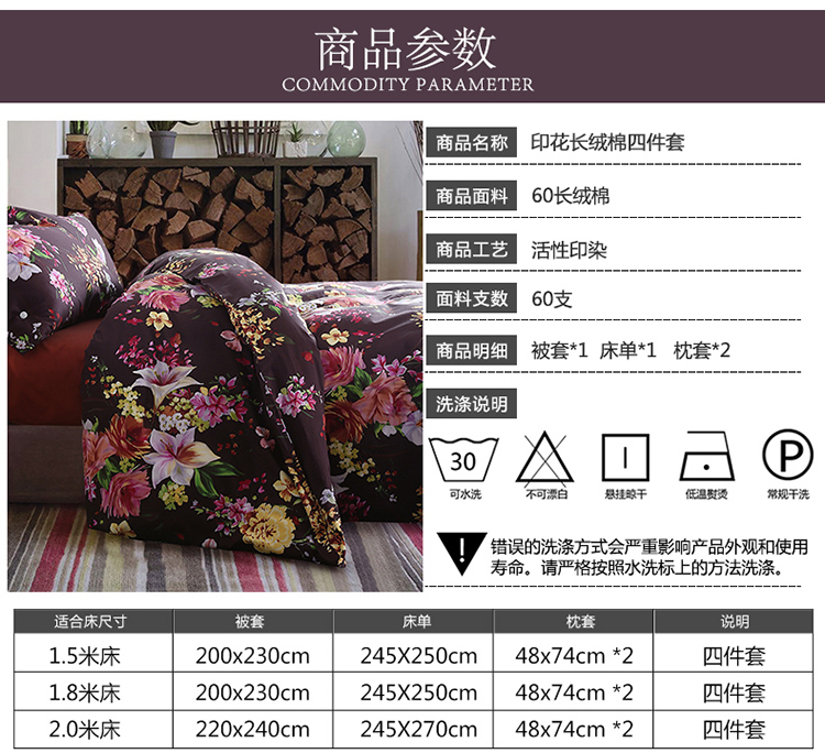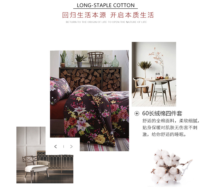 商品名称:太古汇家居 60长绒棉(印花)四件套 琳达TGH024