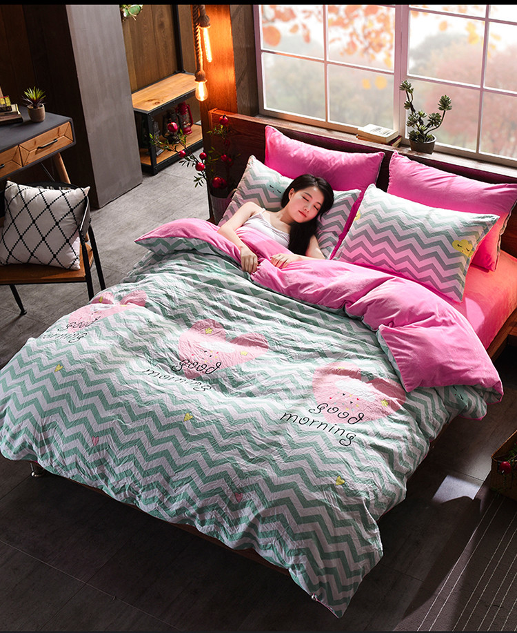 芃成家纺 水洗磨毛加绒四件套 小云朵