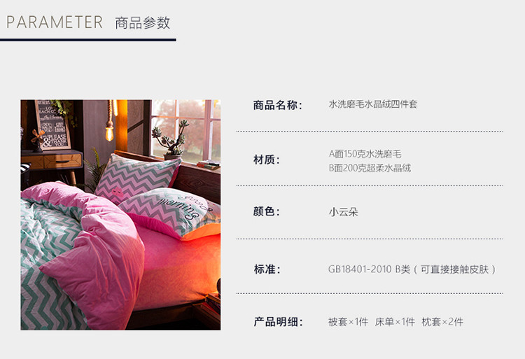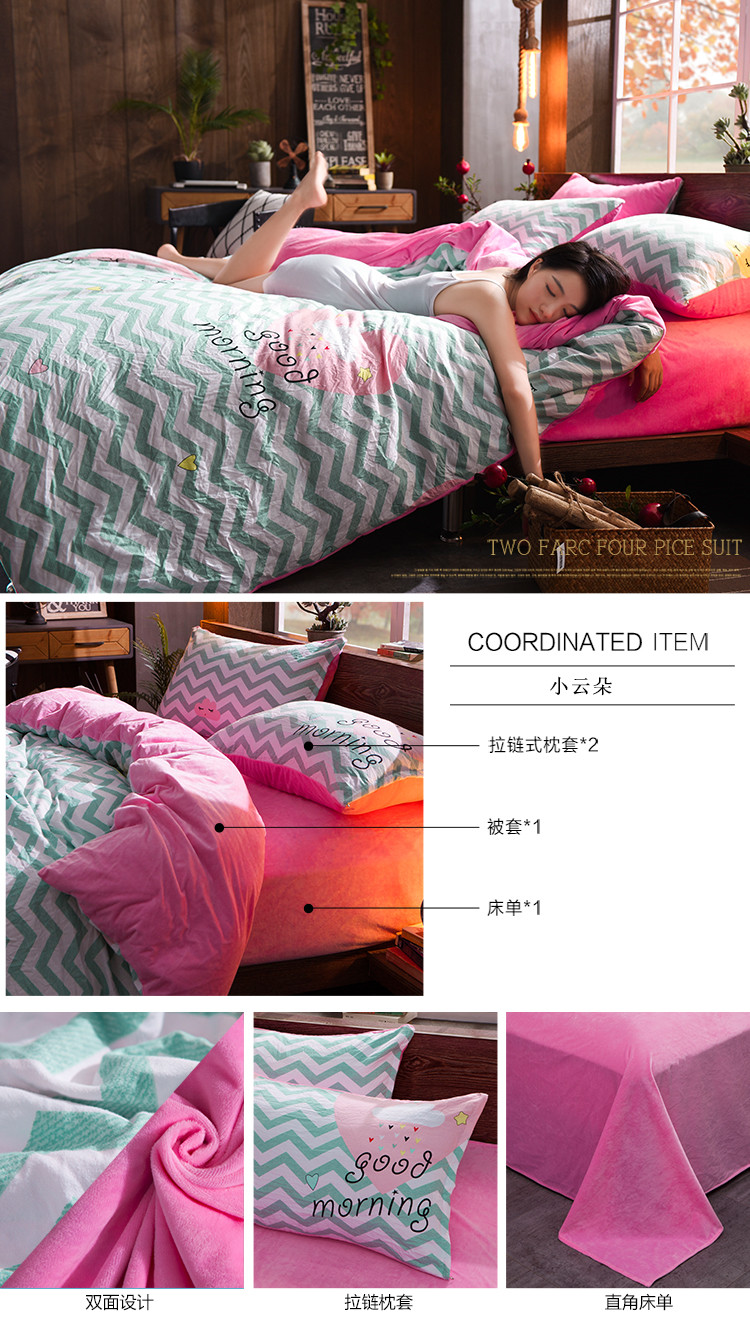商品名称:芃成家纺 水洗磨毛加绒四件套 小云朵