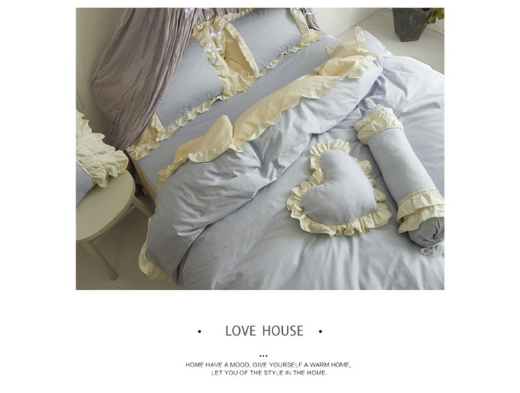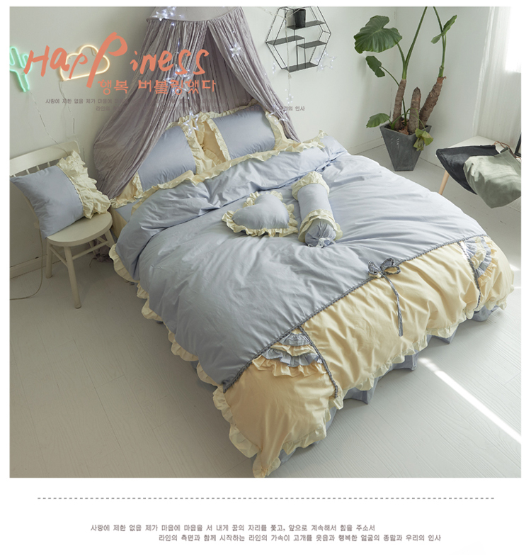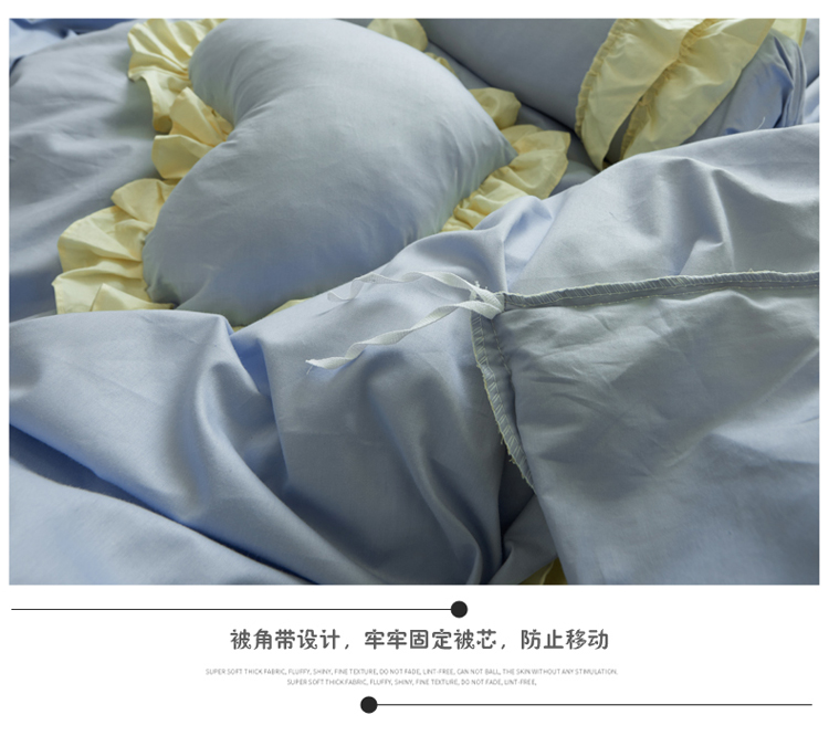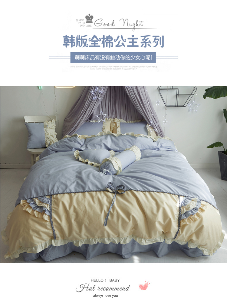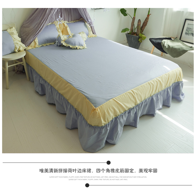 淑女公社 韩版纯棉床裙款四件套-微微公主系列 蓝色,蓝色
