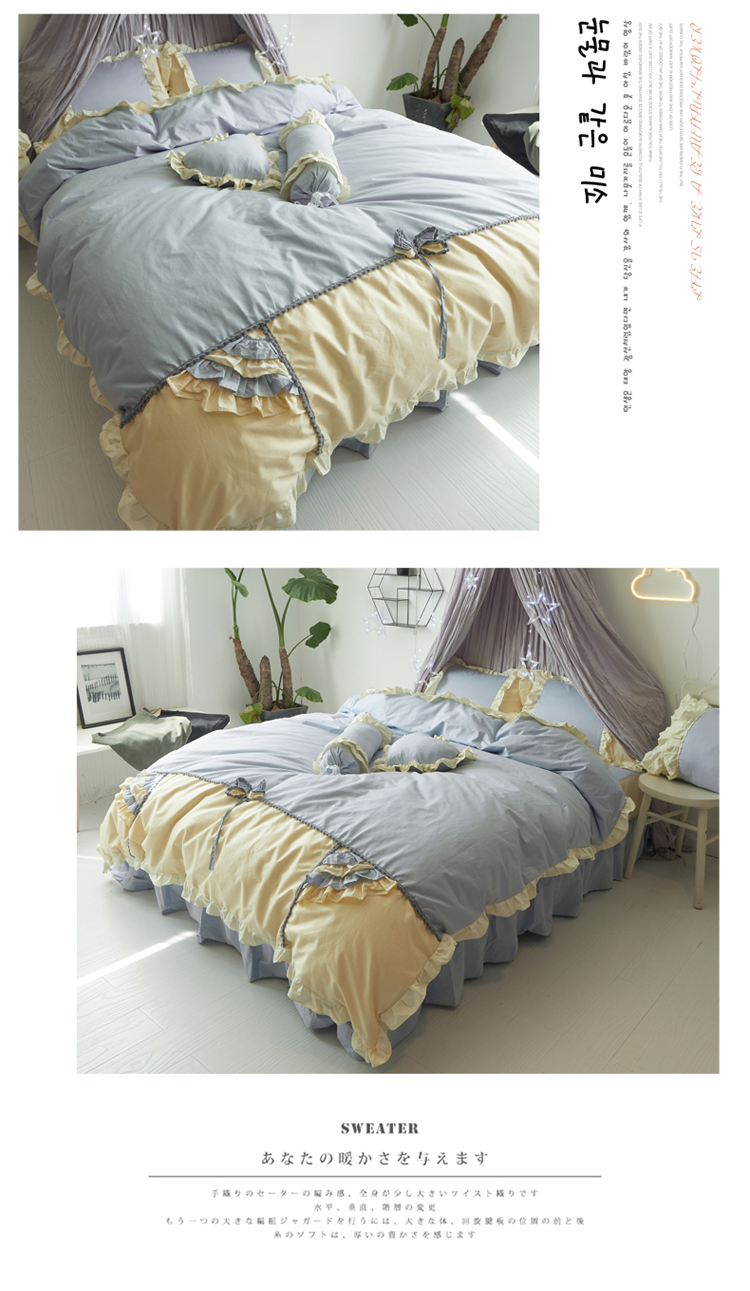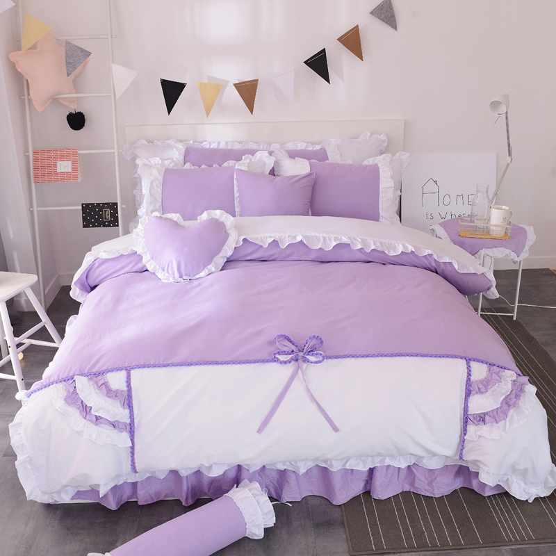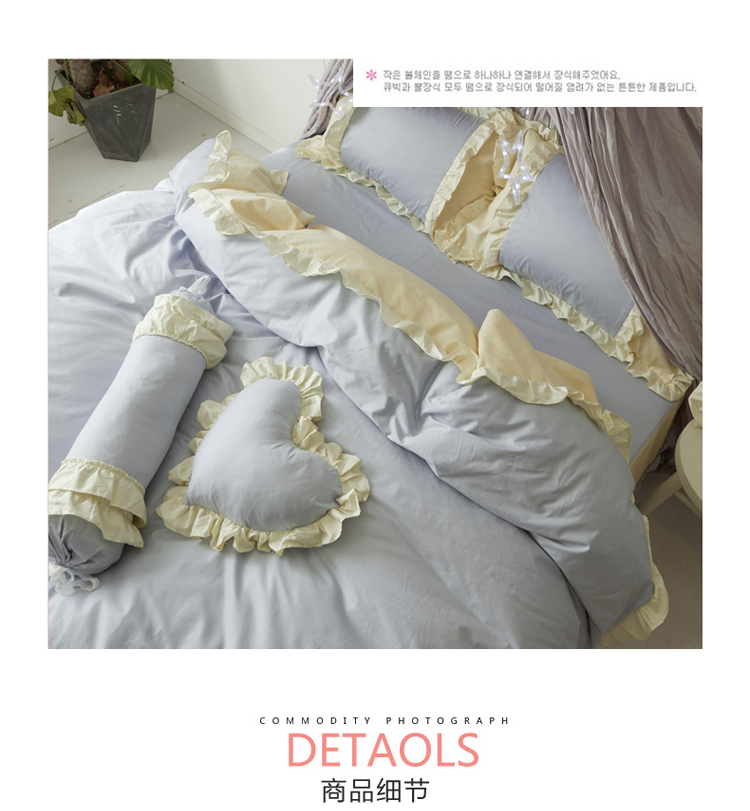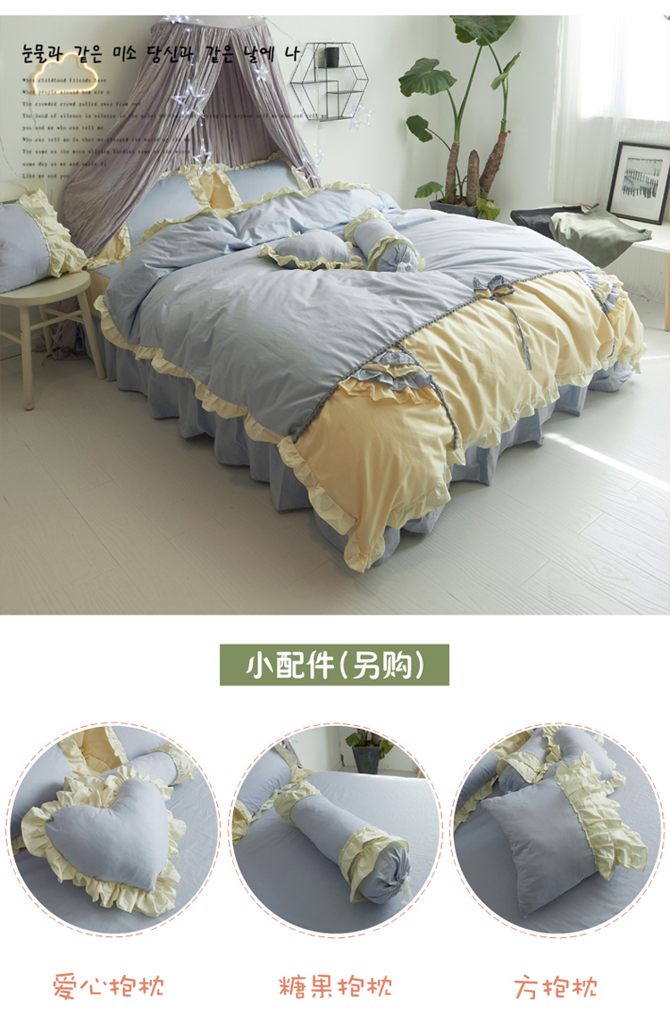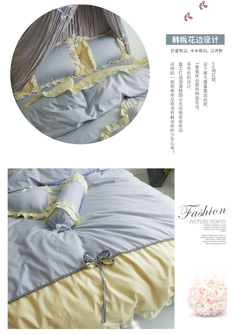 (总)淑女公社 韩版纯棉床裙款四件套-微微公主系列,灰色,玫红色,粉红色,蓝色,紫色