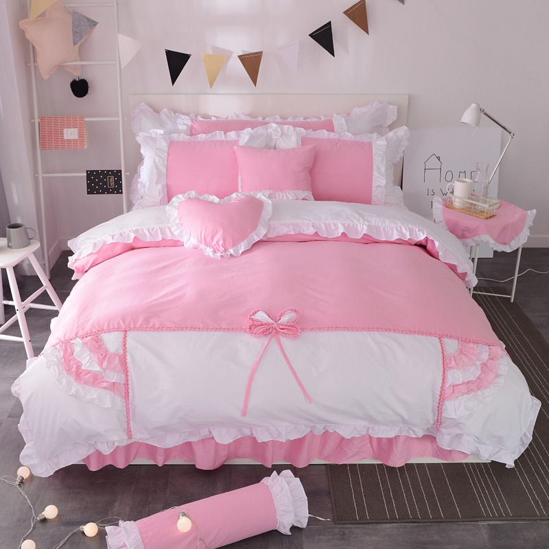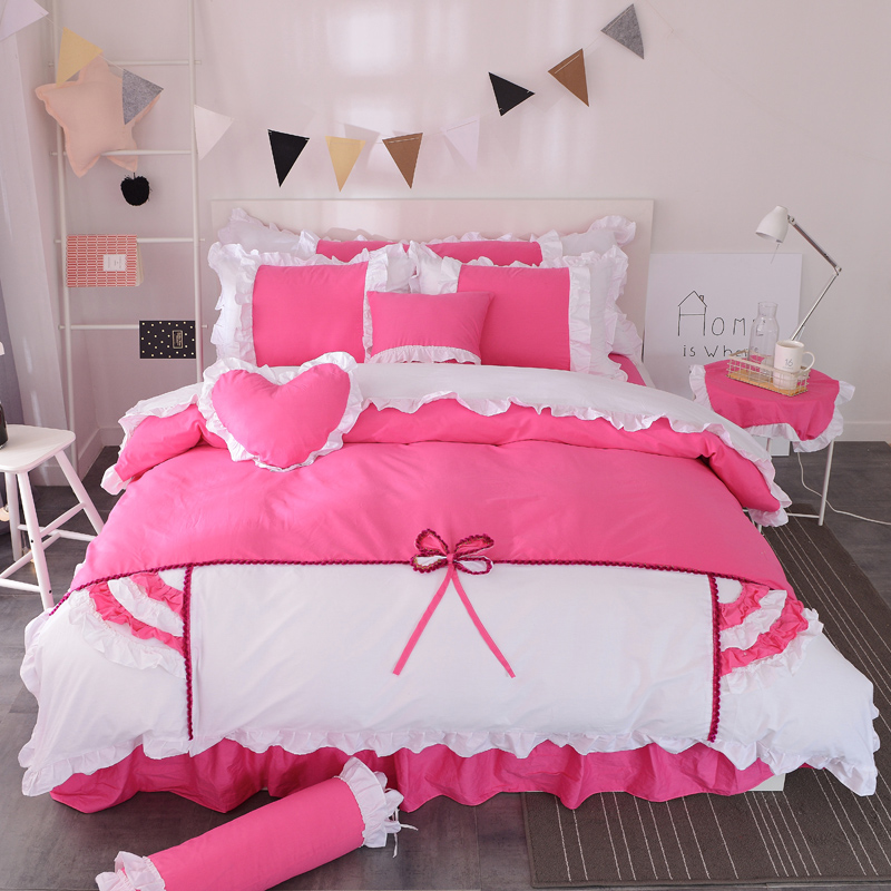 淑女公社 韩版纯棉床裙款四件套-微微公主系列 粉色,粉红色