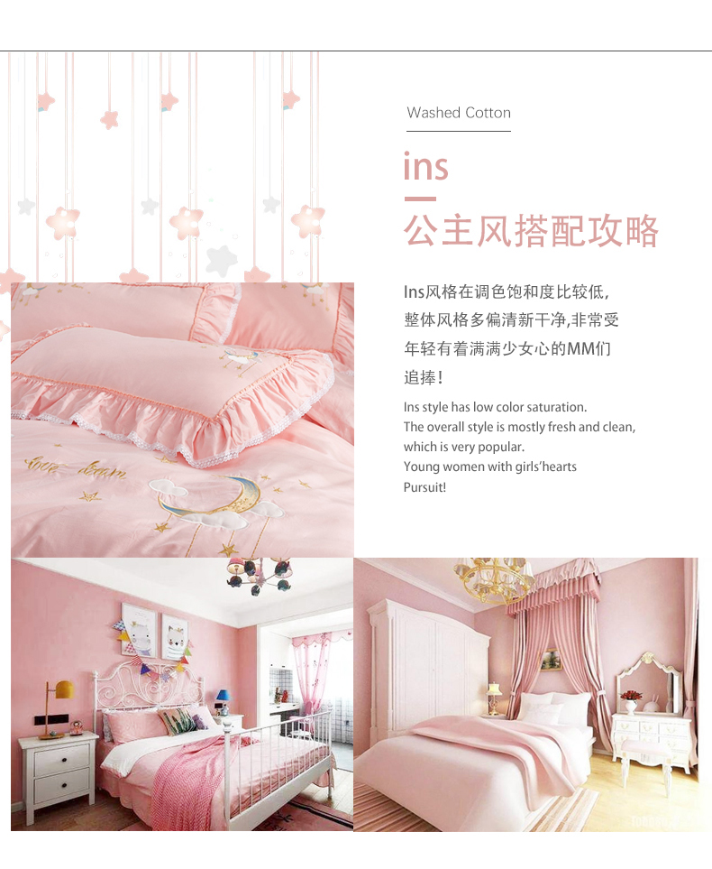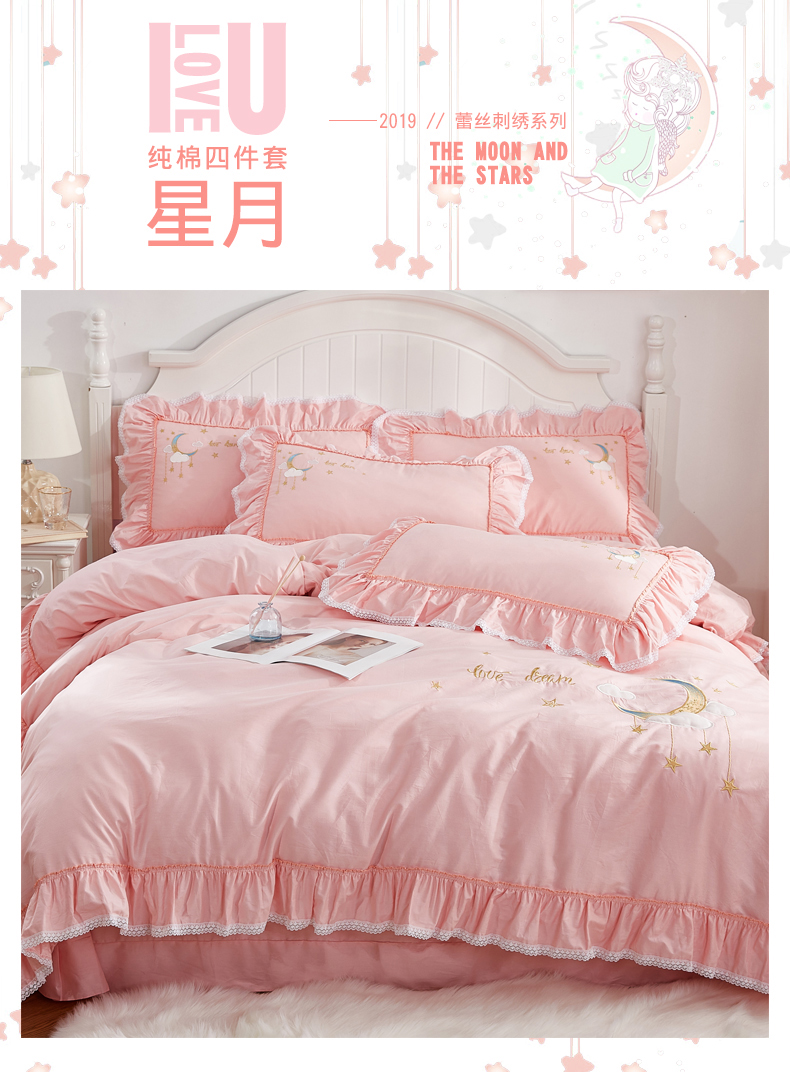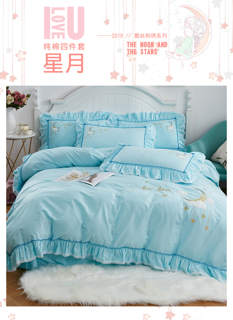 (总)亲亲公主 2025新款全棉绣花款公主风四件套 星月