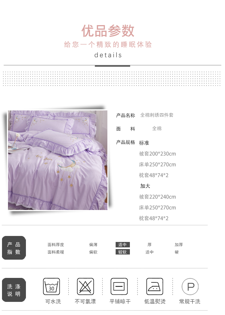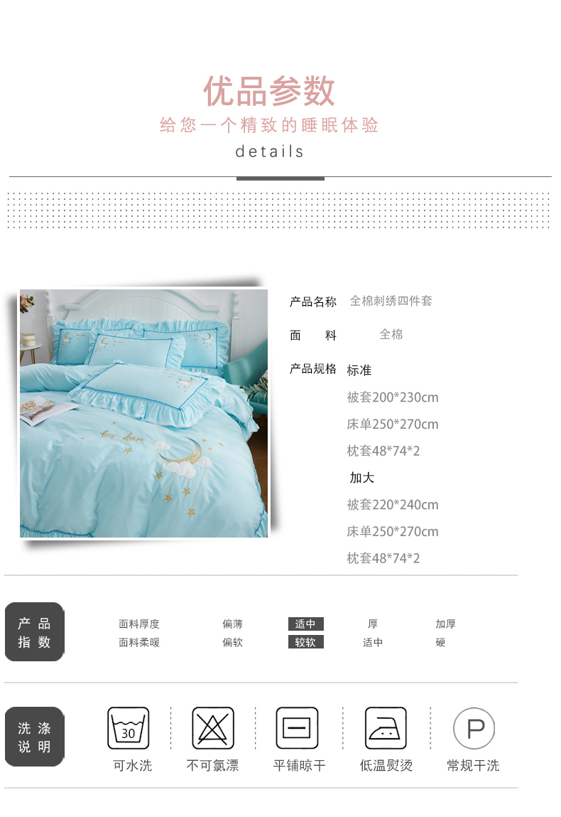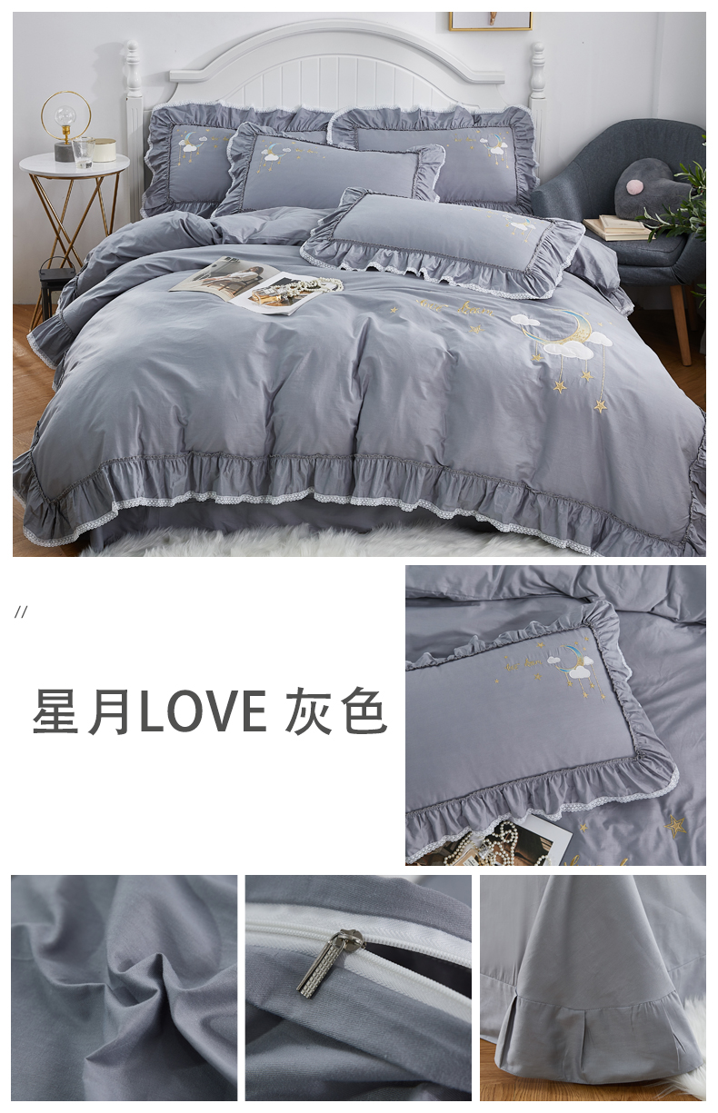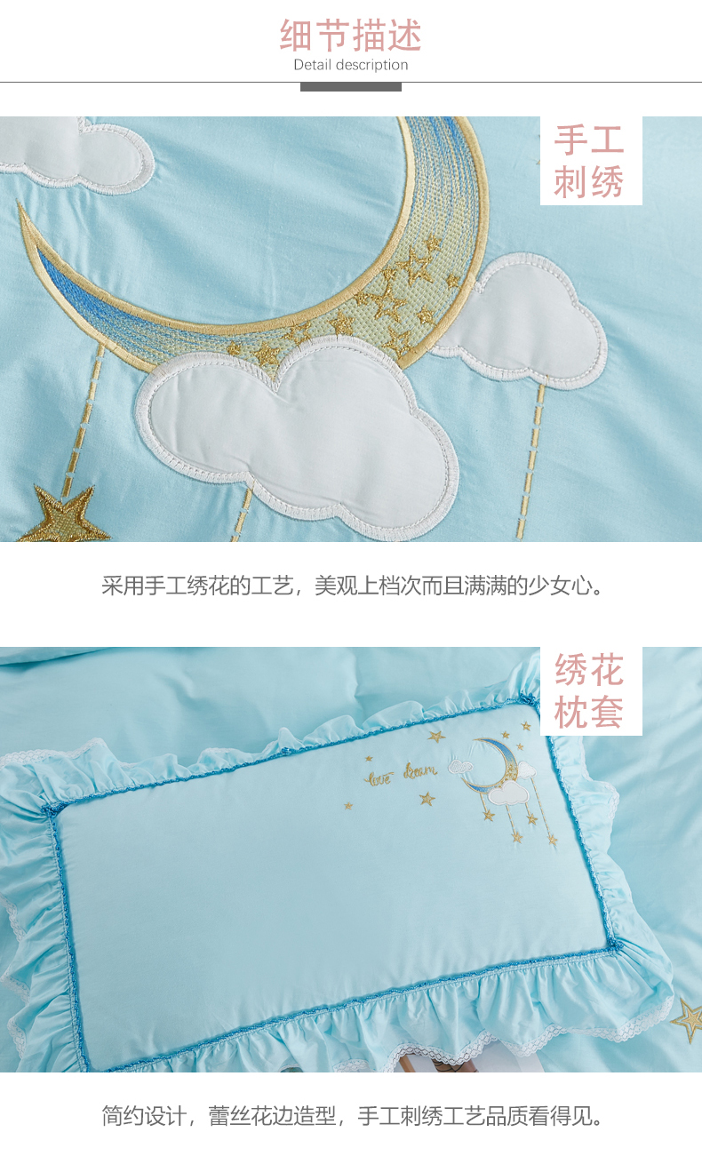 商品名称:(总)亲亲公主 2025新款全棉绣花款公主风四件套 星月