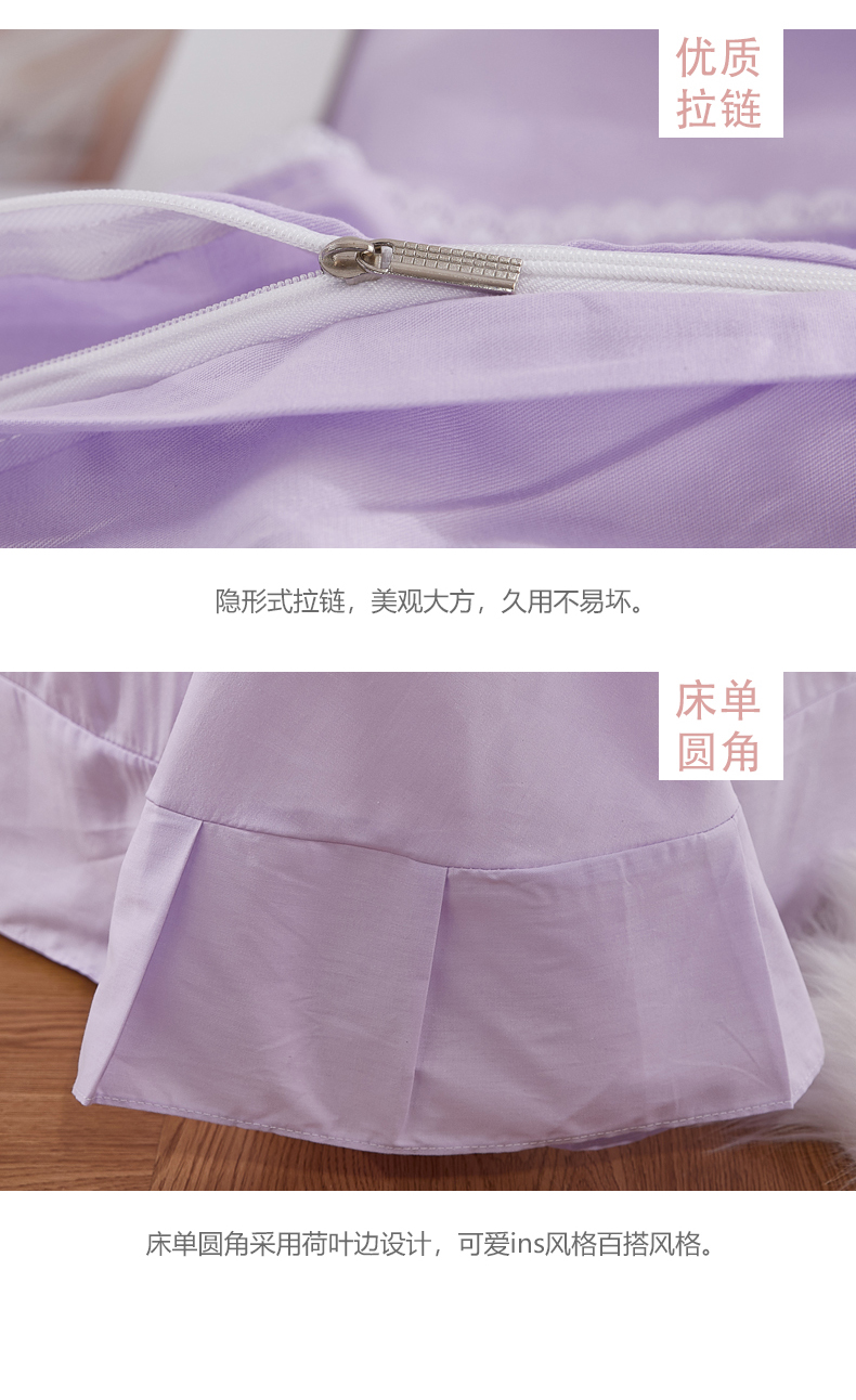 (总)亲亲公主 2026新款全棉法式花边款四件套-纯色茉莉,纯色茉莉