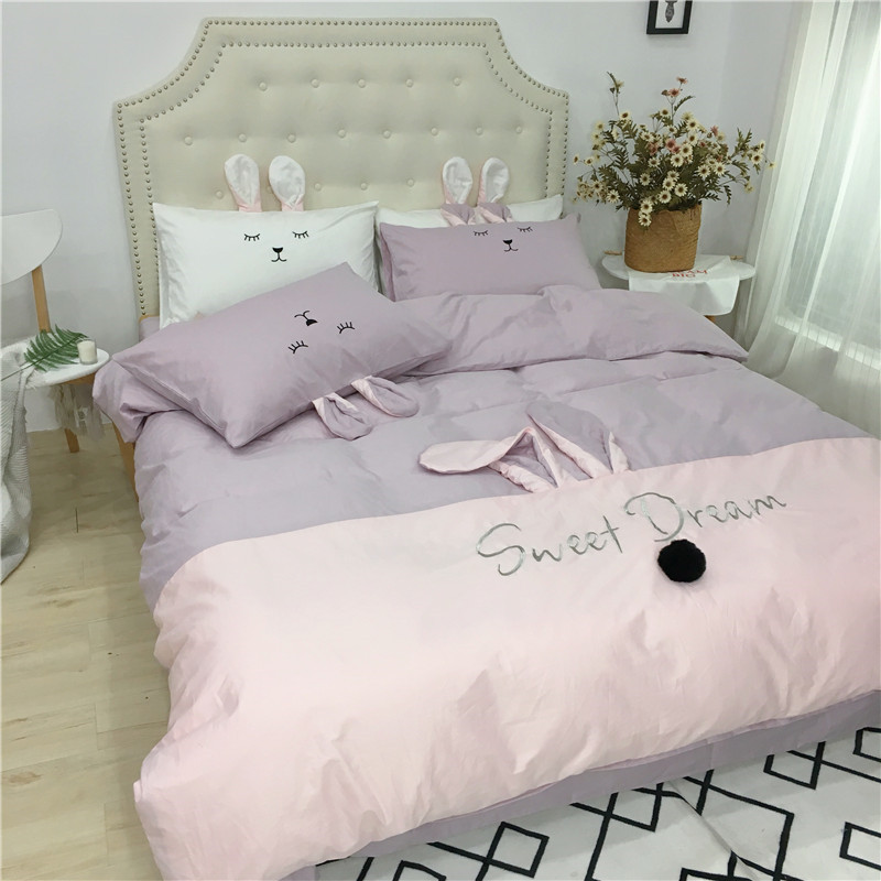 漫调家纺 2019新款ins爆款全棉兔耳朵四件套 豆沙粉