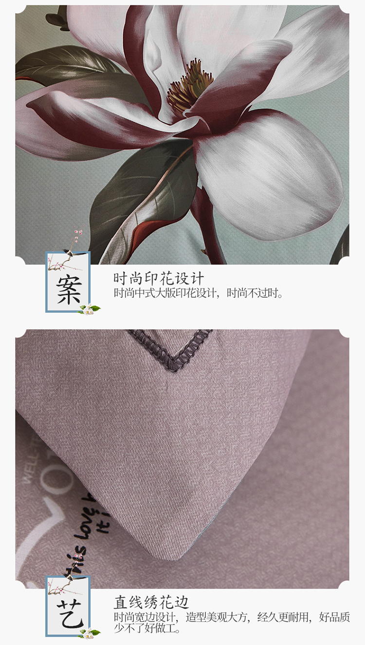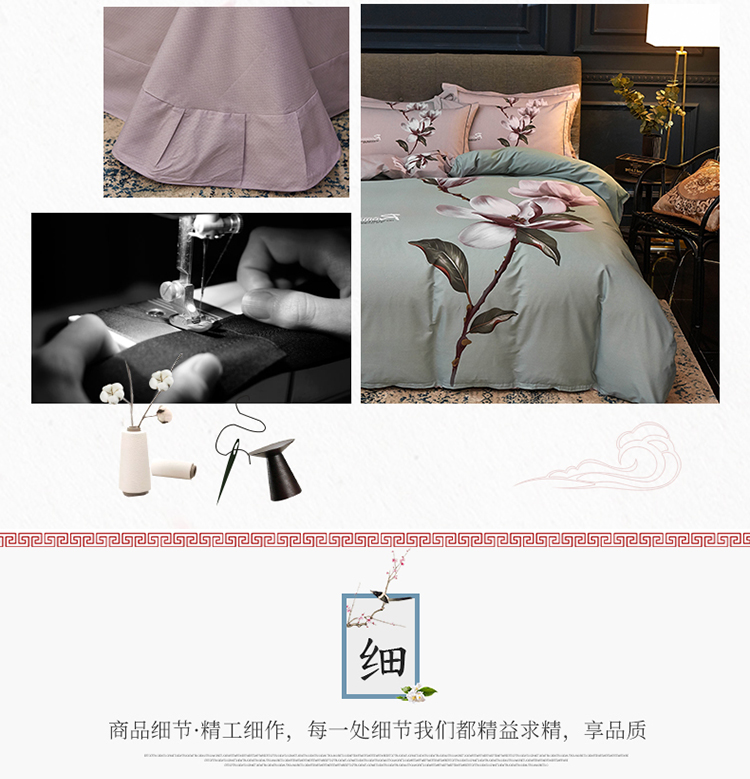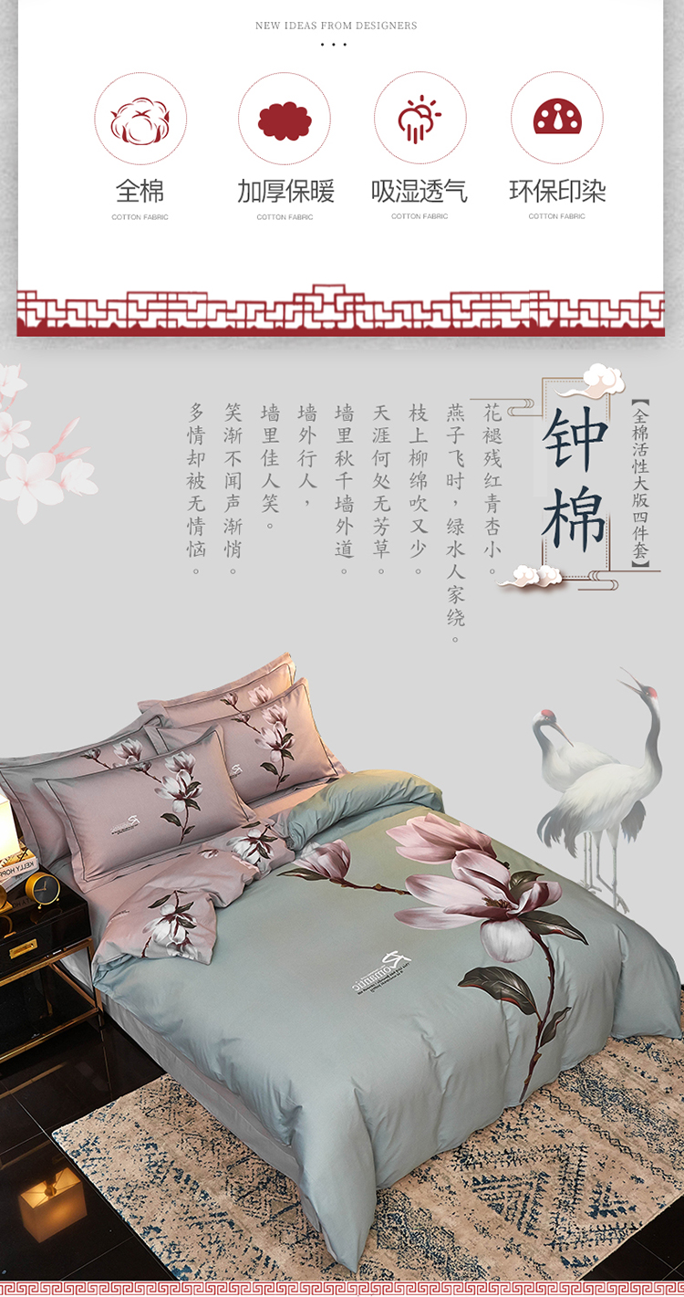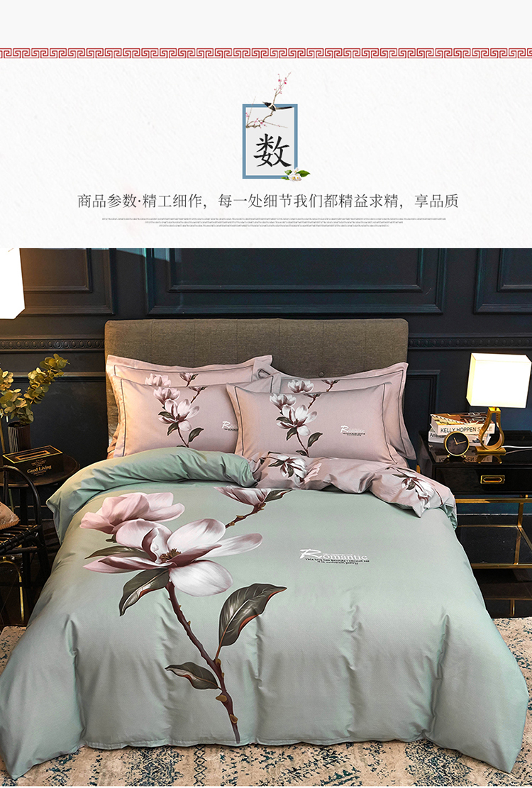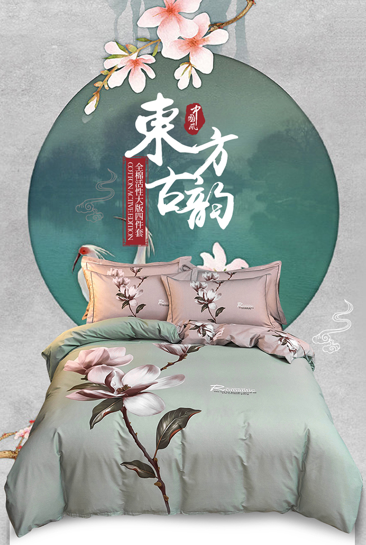 商品名称:雲归梦家纺2019新款13372全棉活性大版四件套 幽兰水绿