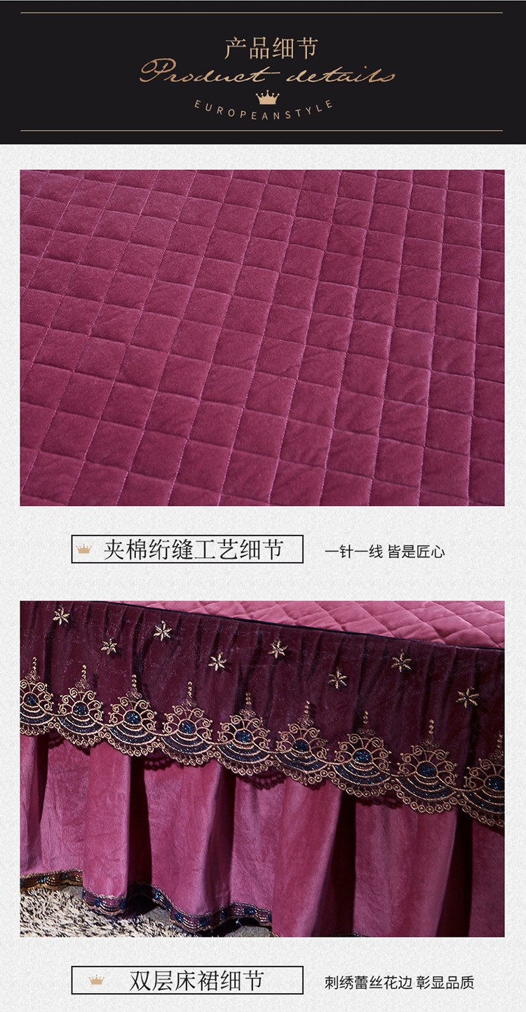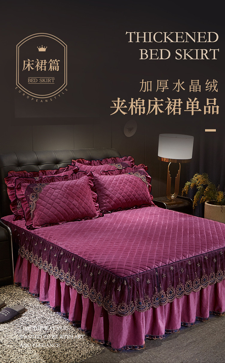 (总)宜凡家纺 2025新款婴儿绒压花全夹棉床裙四件套,韵雅-中国红,韵雅-黑天鹅