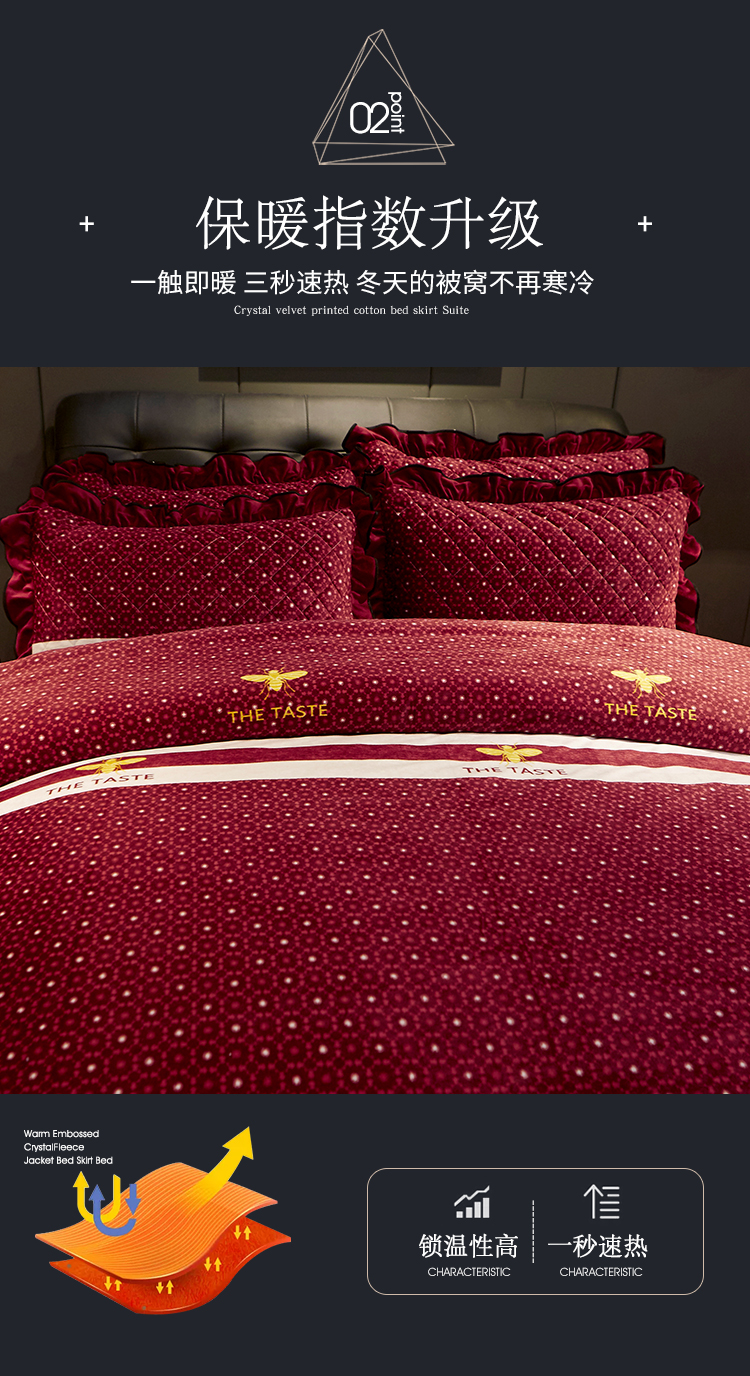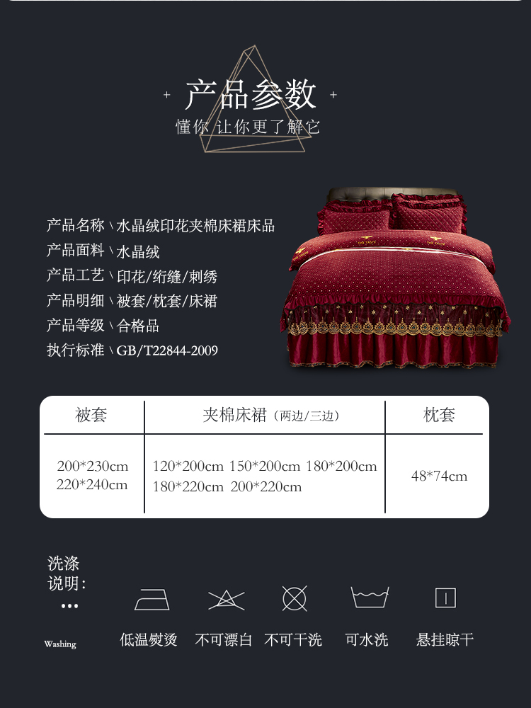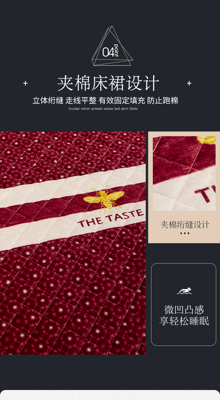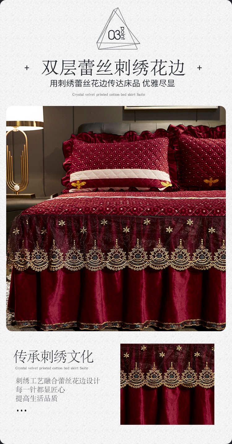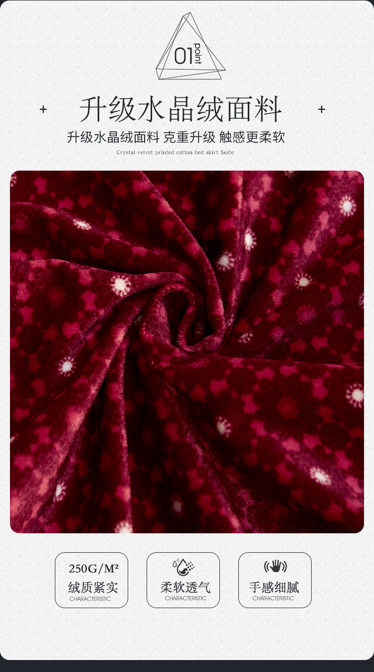 商品名称:宜凡家纺 2019新款水晶绒印花系列床裙四件套 暖晴空