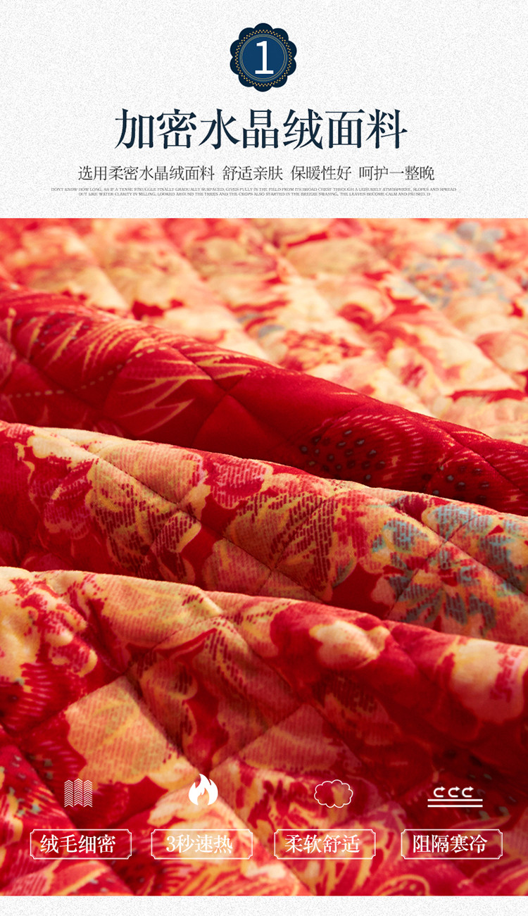 (总)宜凡家纺 2025新款婴儿绒压花全夹棉床盖四件套,韵雅-中国红,韵雅-黑天鹅