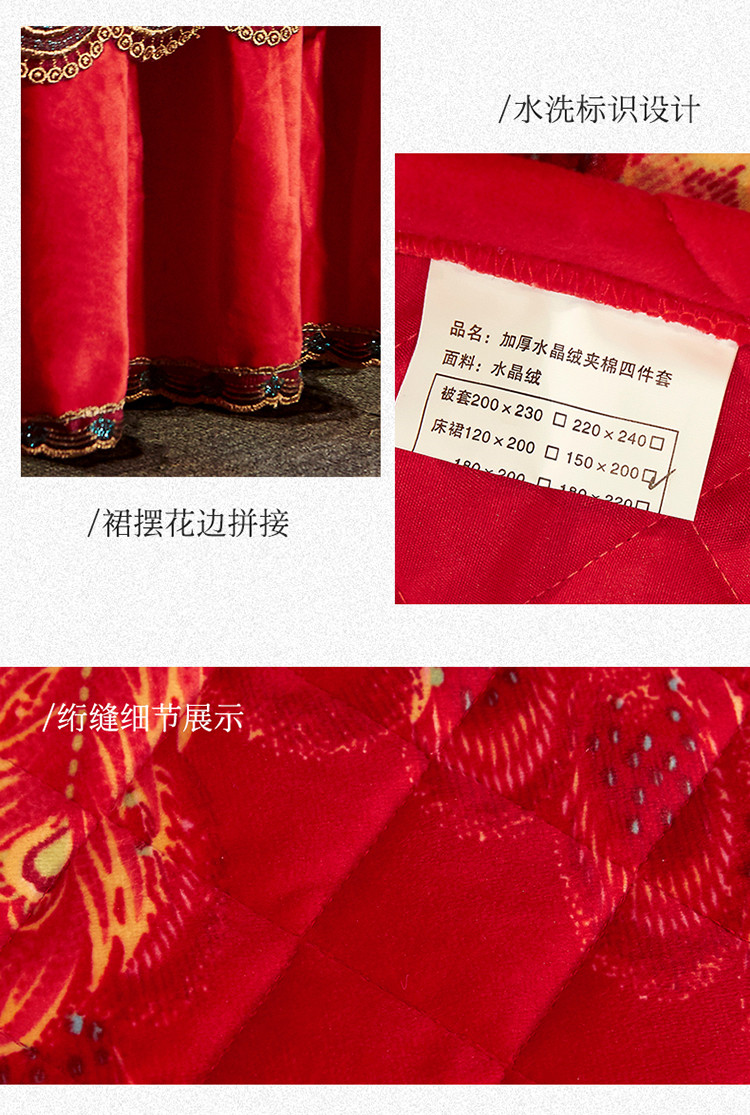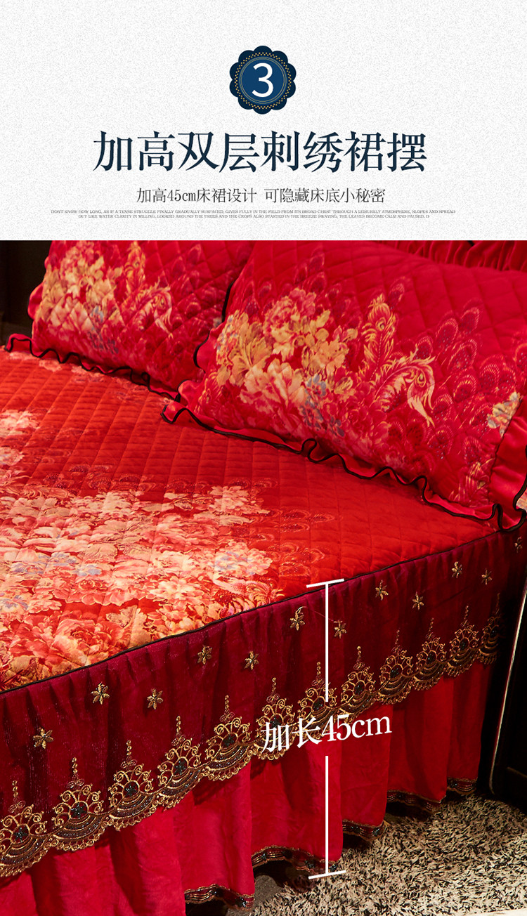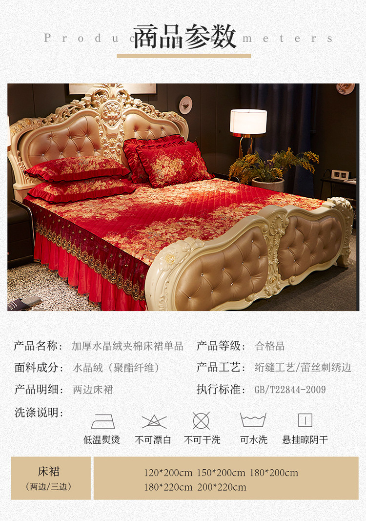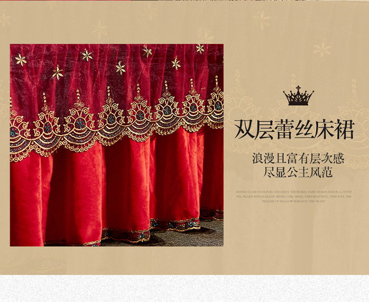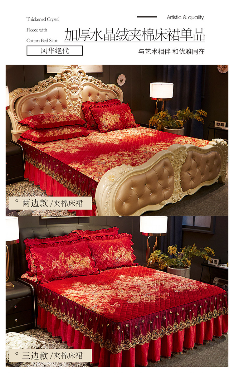 (总)宜凡家纺 2025新款婴儿绒压花全夹棉床裙四件套,韵雅-中国红,韵雅-黑天鹅